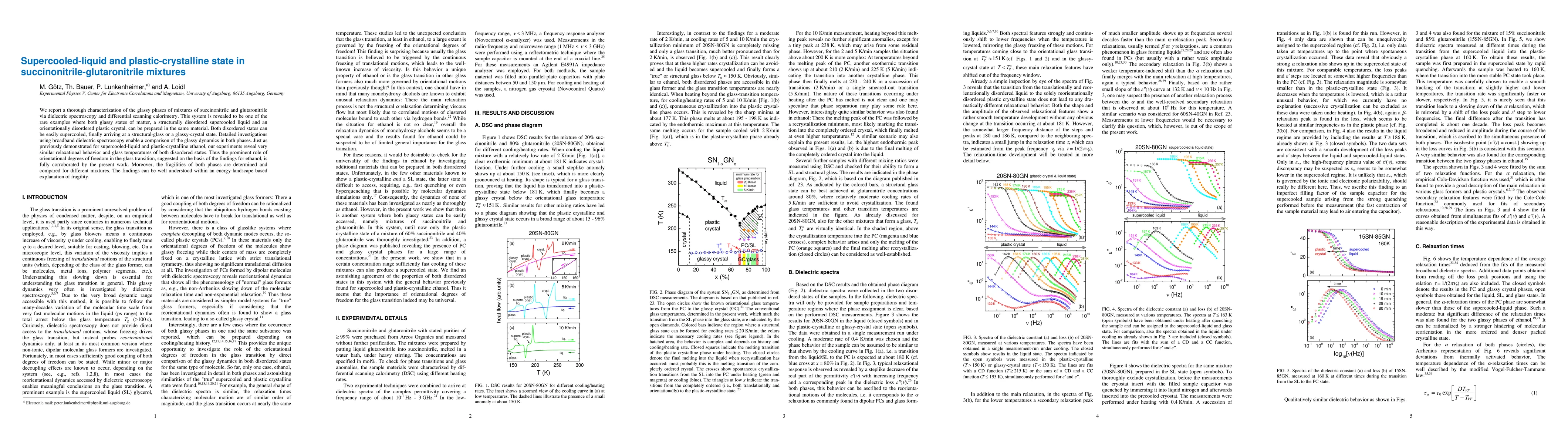 This paper characterizes the glassy phases of succinonitrile-glutaronitrile mixtures, revealing both a supercooled liquid and a plastic crystal state. Dielectric spectroscopy and calorimetry show similar relaxational behavior and glass temperatures for these phases, supporting the role of orientational degrees of freedom in the glass transition.