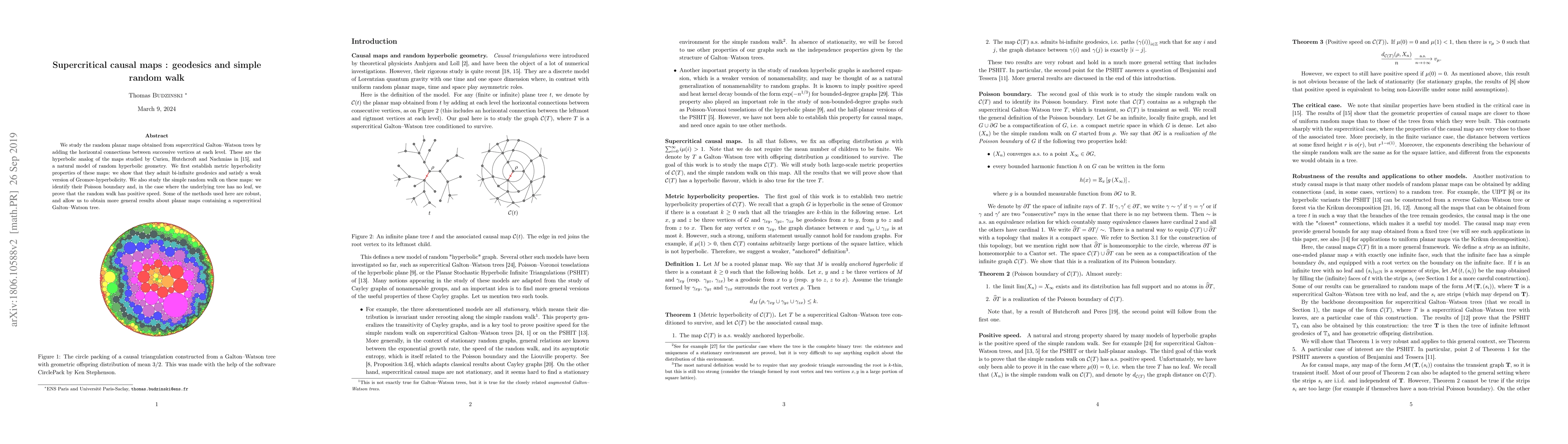 This paper investigates random planar maps derived from supercritical Galton-Watson trees, establishing their metric hyperbolicity and identifying bi-infinite geodesics. It also explores the simple random walk on these maps, proving positive speed in the absence of leaves in the underlying tree.