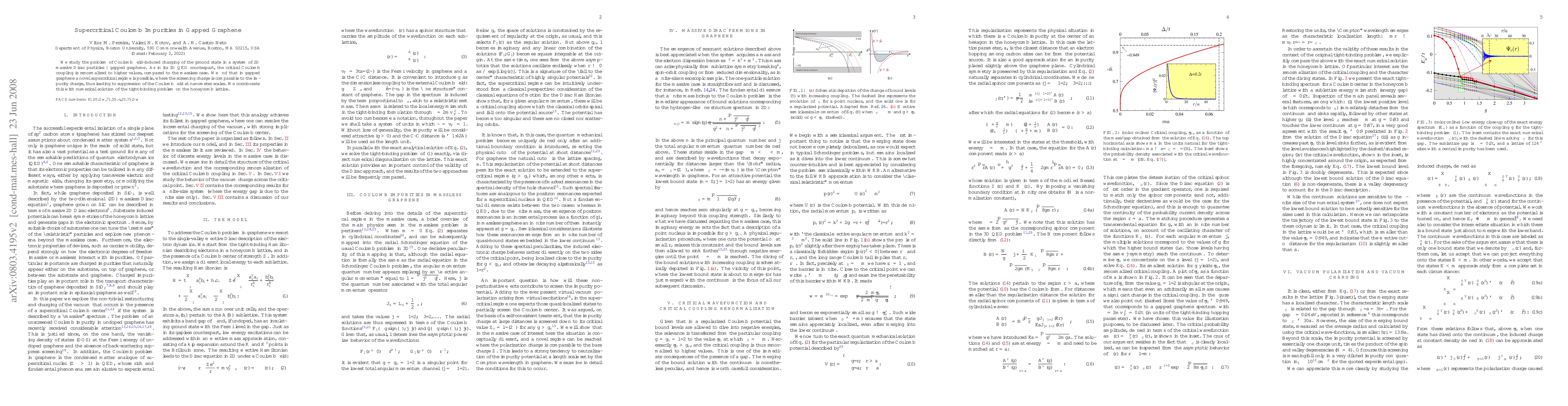 We study the problem of Coulomb field-induced charging of the ground state in a system of 2D massive Dirac particles (gapped graphene). As in its 3D QED counterpart, the critical Coulomb coupling is renormalized to higher values, compared to the massless case. We find that in gapped graphene a novel supercritical regime is possible, where the screening charge is comparable to the impurity charge, thus leading to suppression of the Coulomb field at nanometer scales. We corroborate this with numerical solution of the tight-binding problem in the honeycomb lattice.