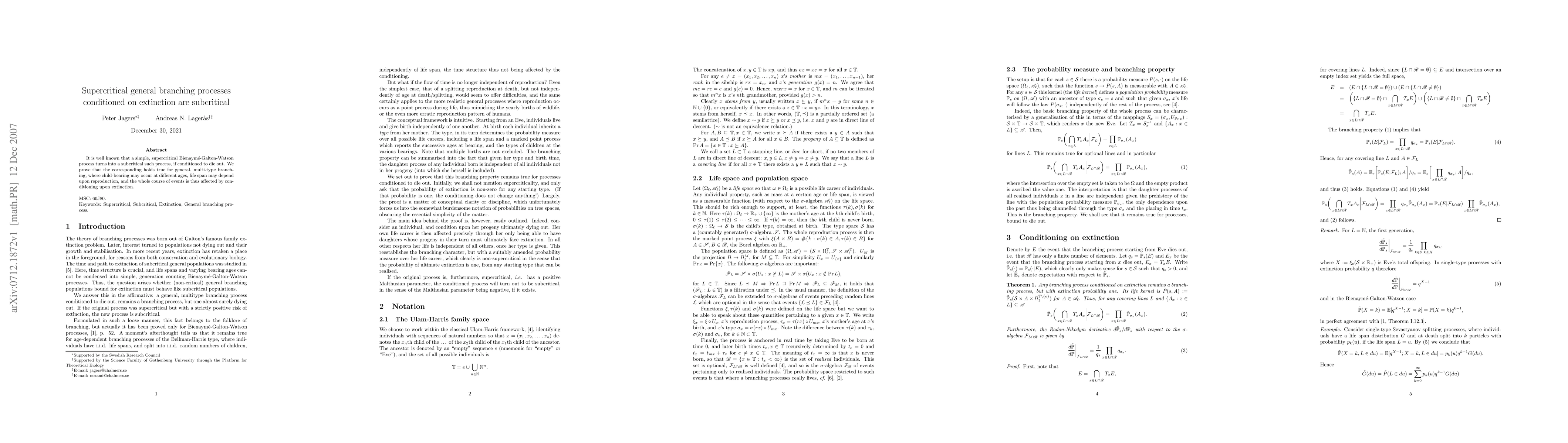 This paper demonstrates that a supercritical general branching process, when conditioned on eventual extinction, behaves as a subcritical process. It extends this result to multi-type branching scenarios with complex life spans and reproduction dynamics.