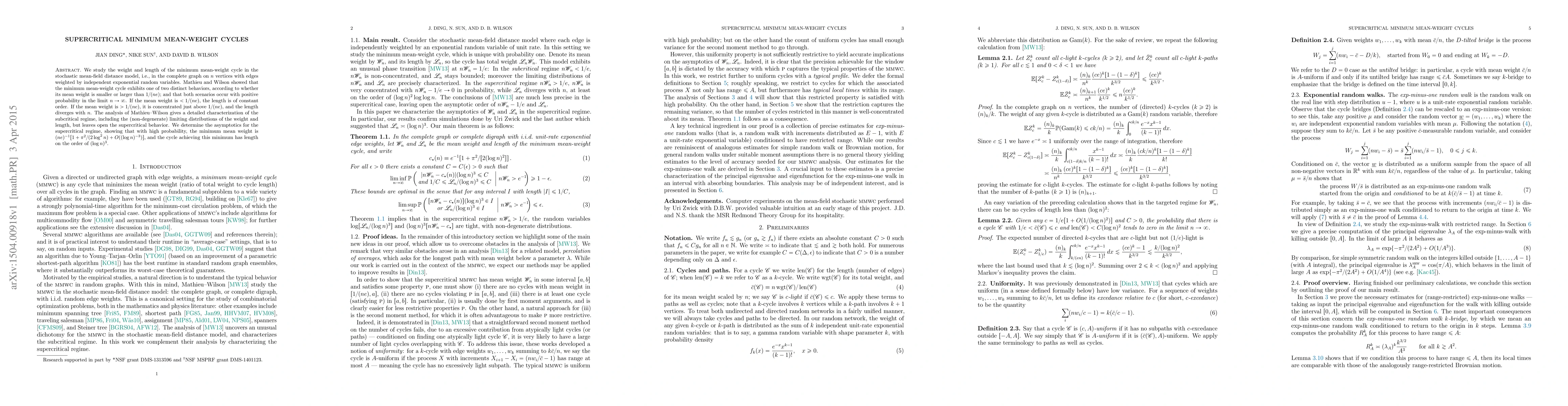 The paper extends the analysis of minimum mean-weight cycles beyond the subcritical regime, providing precise asymptotics for the supercritical case, which was previously unexplored.