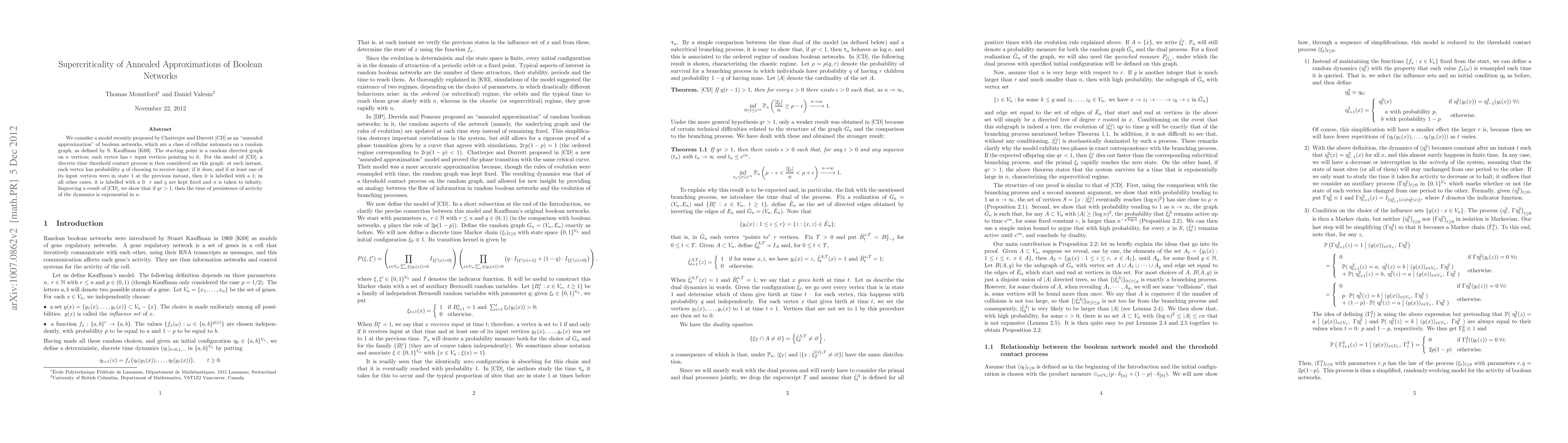 We consider a model recently proposed by Chatterjee and Durrett [CD2011] as an "annealed approximation" of boolean networks, which are a class of cellular automata on a random graph, as defined by S. Kauffman [K69]. The starting point is a random directed graph on $n$ vertices; each vertex has $r$ input vertices pointing to it. For the model of [CD2011], a discrete time threshold contact process is then considered on this graph: at each instant, each vertex has probability $q$ of choosing to receive input; if it does, and if at least one of its input vertices were in state 1 at the previous instant, then it is labelled with a 1; in all other cases, it is labelled with a 0. $r$ and $q$ are kept fixed and $n$ is taken to infinity. Improving a result of [CD2011], we show that if $qr > 1$, then the time of persistence of activity of the dynamics is exponential in $n$.