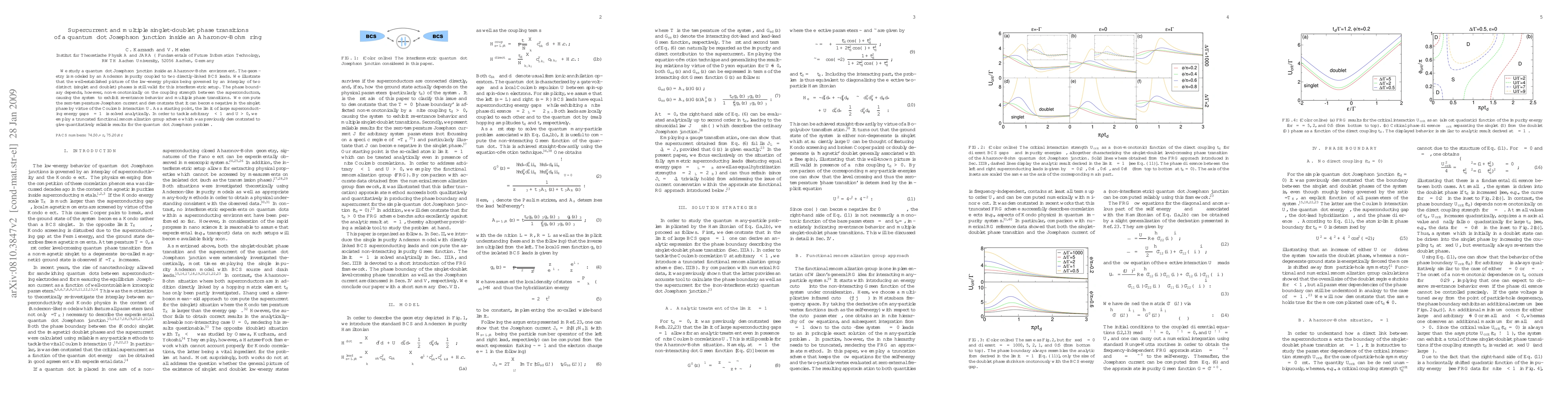 This paper investigates a quantum dot Josephson junction within an Aharonov-Bohm ring, revealing multiple phase transitions driven by varying coupling strength. The study shows that the Josephson current can become negative in the singlet phase due to Coulomb interaction, employing a functional renormalization group approach for analysis.
