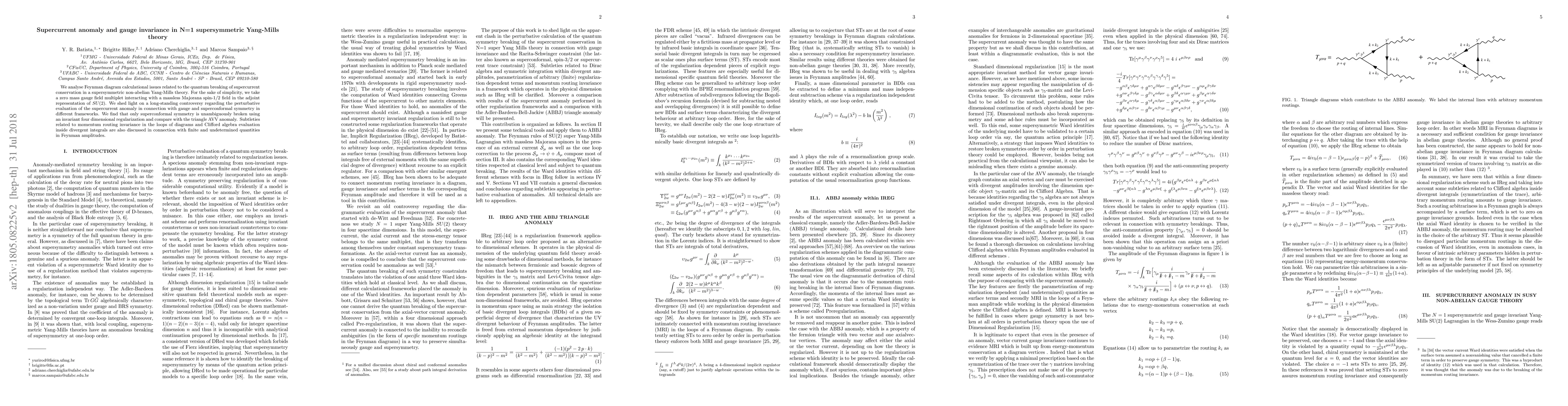 We analyse Feynman diagram calculational issues related to the quantum breaking of supercurrent conservation in a supersymmetric non-abelian Yang-Mills theory. For the sake of simplicity, we take a zero mass gauge field multiplet interacting with a massless Majorana spin-$1/2$ field in the adjoint representation of $SU(2)$. We shed light on a long-standing controversy regarding the perturbative evaluation of the supercurrent anomaly in connection with gauge and superconformal symmetry in different frameworks. We find that only superconformal symmetry is unambiguously broken using an invariant four dimensional regularization and compare with the triangle AVV anomaly. Subtleties related to momentum routing invariance in the loops of diagrams and Clifford algebra evaluation inside divergent integrals are also discussed in connection with finite and undetermined quantities in Feynman amplitudes.