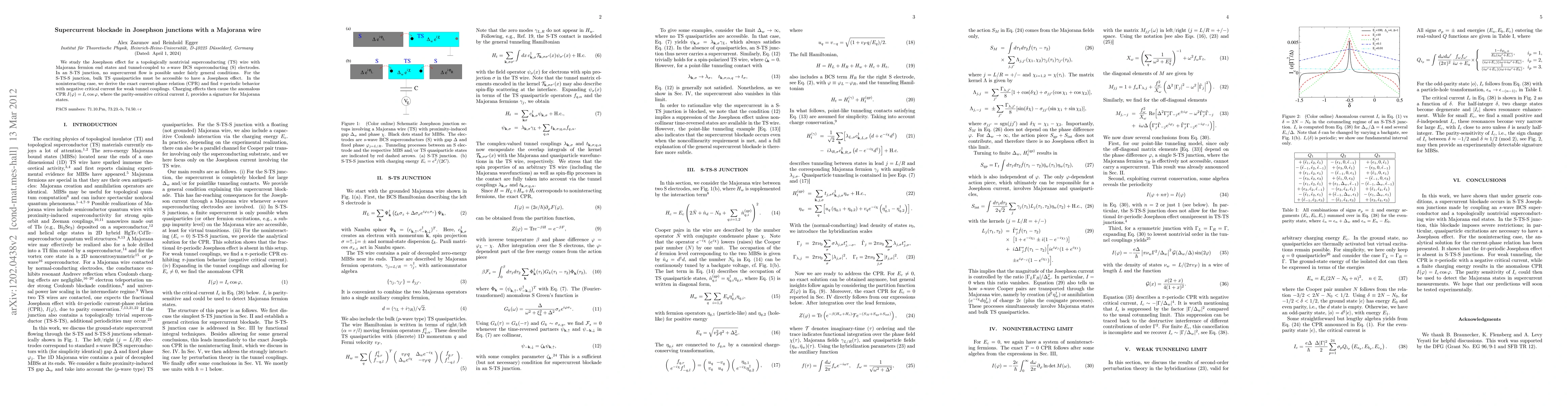 The paper investigates Josephson junctions with Majorana wires, finding no supercurrent flow in S-TS junctions under typical conditions. In S-TS-S junctions, bulk Majorana quasiparticles are necessary for a Josephson effect, leading to a u201cpi-periodicu201d current-phase relation with negative critical current for weak tunnel couplings. Charging effects result in an anomalous current-phase relation, with a parity-sensitive critical current serving as a Majorana signature.