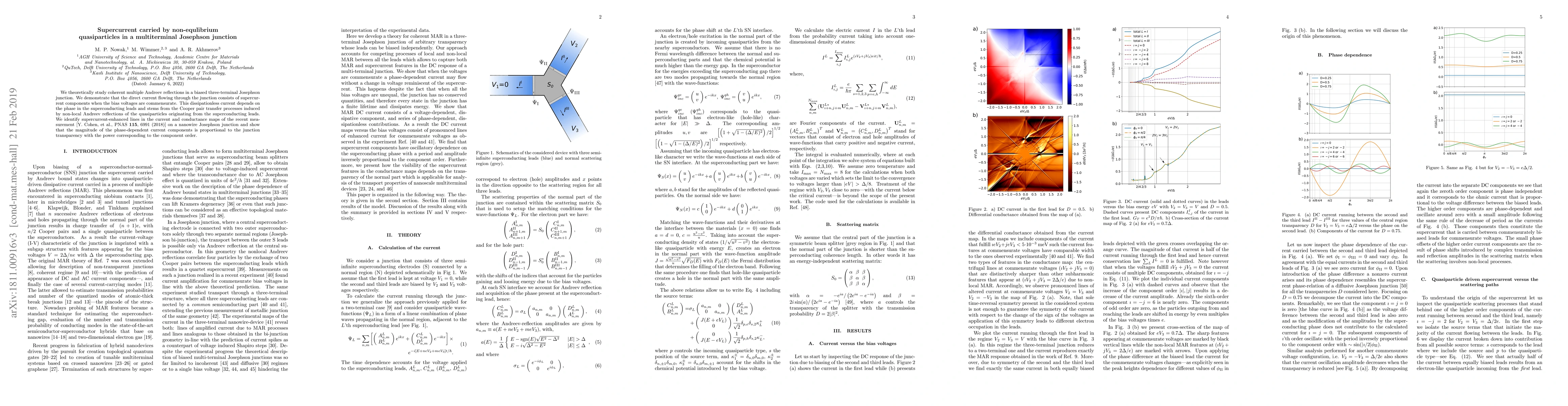 This paper theoretically investigates coherent multiple Andreev reflections in a three-terminal Josephson junction, demonstrating that supercurrent components contribute to the direct current when bias voltages are commensurate. The study links the phase-dependent, dissipationless current to non-local Andreev reflections and verifies these findings with recent experimental data on nanowire Josephson junctions.