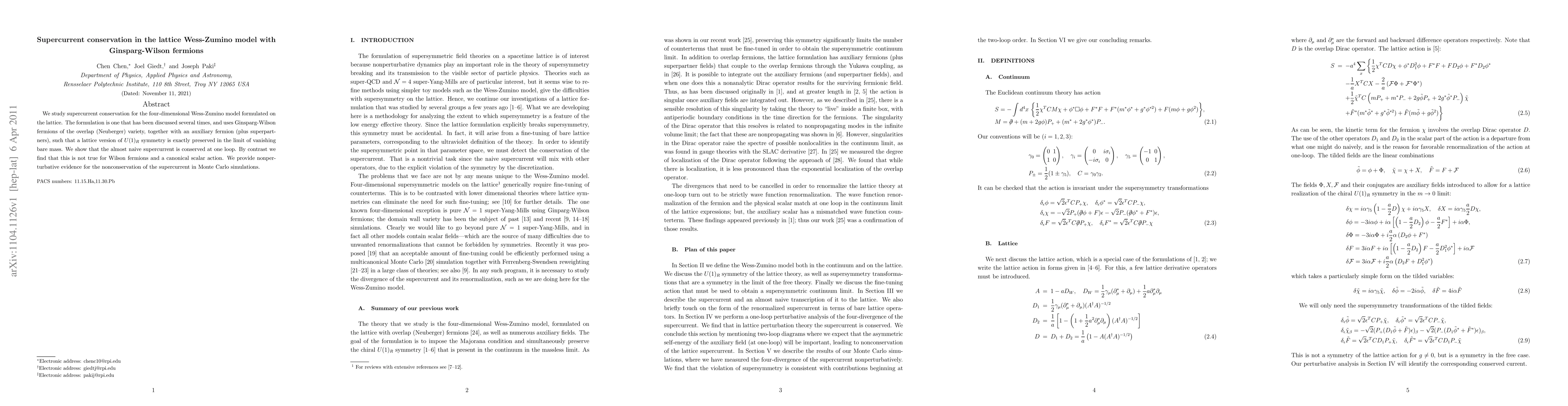 This research investigates supercurrent conservation in the lattice formulation of the four-dimensional Wess-Zumino model using Ginsparg-Wilson fermions. It demonstrates that the almost naive supercurrent is conserved at one loop, unlike the case with Wilson fermions and a canonical scalar action, providing nonperturbative evidence of supercurrent nonconservation in Monte Carlo simulations.