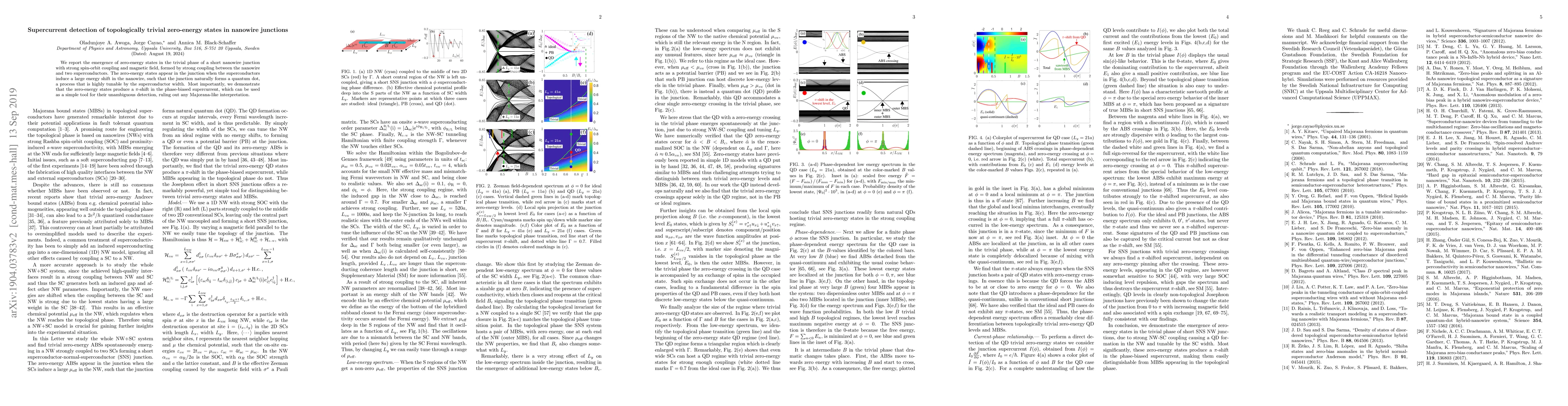 Researchers discovered zero-energy states in a nanowire junction caused by strong spin-orbit coupling and magnetic fields, detectable through a phase-shifted supercurrent, ruling out Majorana-like interpretations.