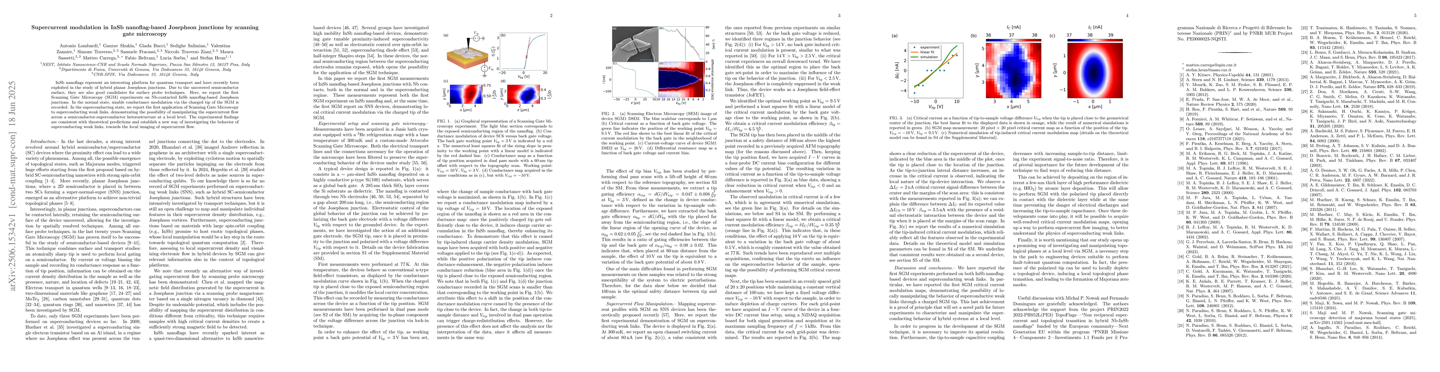 This study presents the first application of Scanning Gate Microscopy (SGM) on Nb-contacted InSb nanoflag-based Josephson junctions. Sizable conductance modulation in both normal and superconducting states was observed, demonstrating the local manipulation of supercurrent flow across a semiconductor-superconductor heterostructure, paving the way for local imaging of supercurrent.