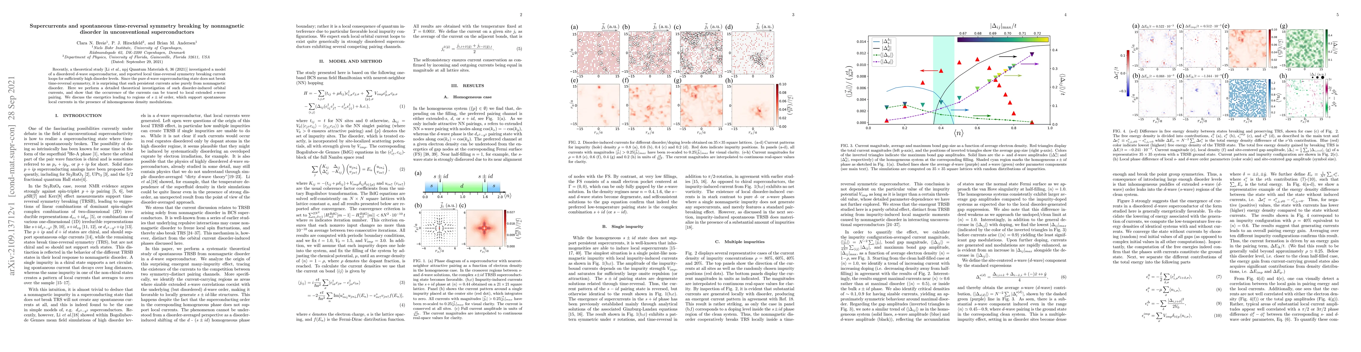 This paper investigates how nonmagnetic disorder in unconventional $d$-wave superconductors can induce spontaneous time-reversal symmetry breaking, leading to persistent current loops. The study reveals that local extended $s$-wave pairing and $s\pm id$ order parameters are responsible for these phenomena.