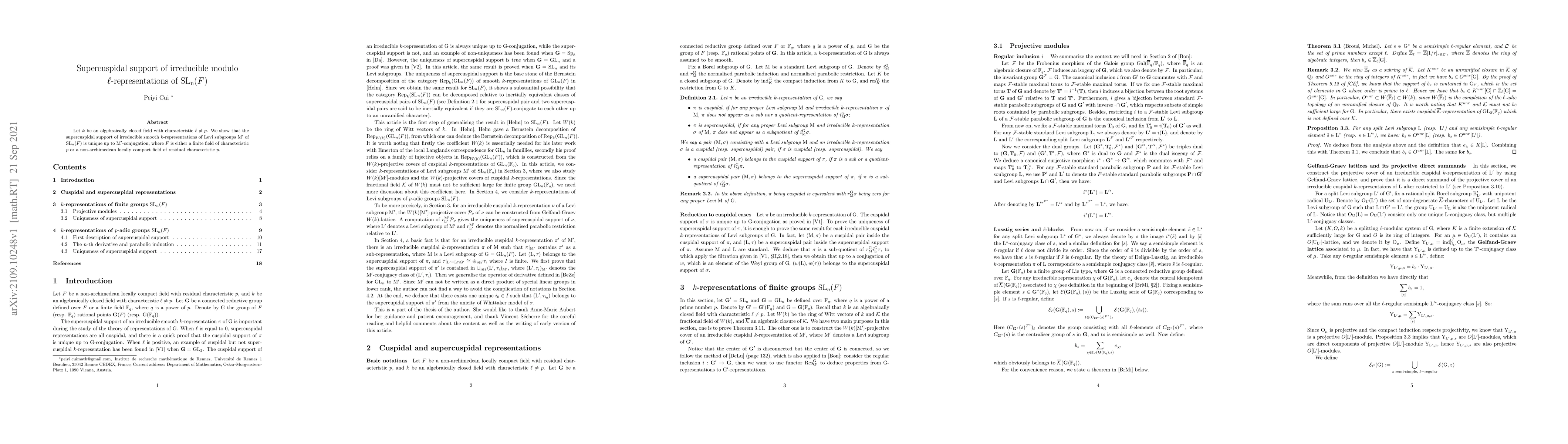 This paper demonstrates that the supercuspidal support for irreducible smooth k-representations of Levi subgroups M' of SL_n(F) is unique up to M'-conjugation, where F is either a finite field or a non-archimedean locally compact field of residual characteristic p.