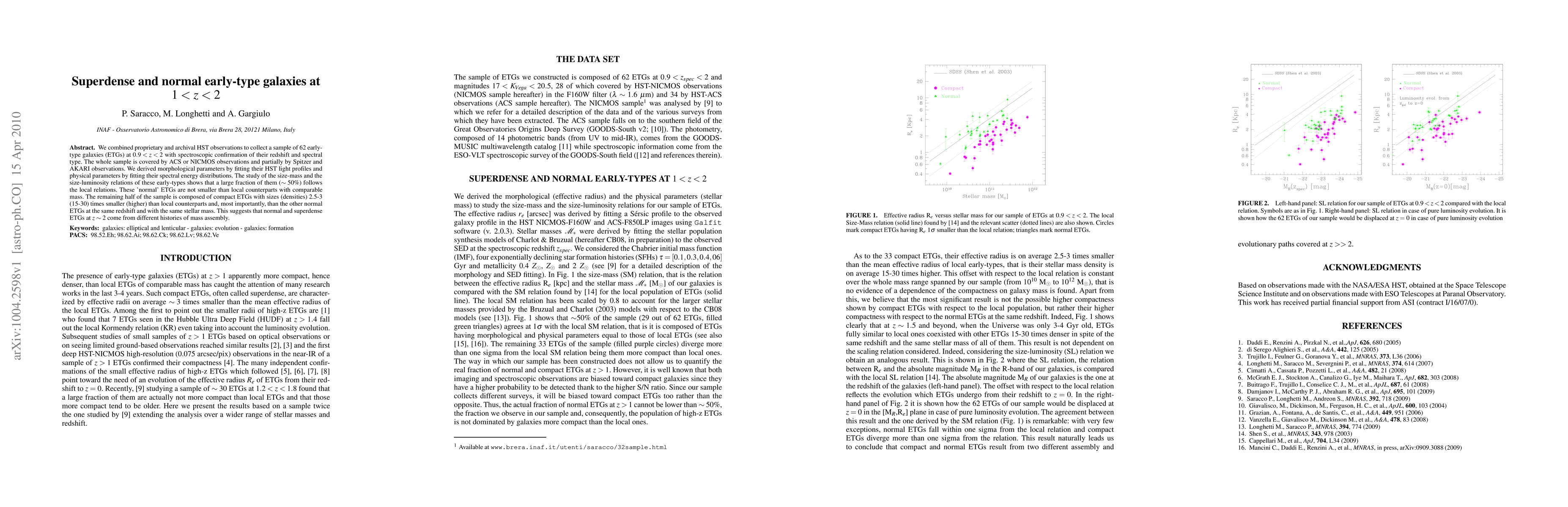 This study combines HST observations to analyze 62 early-type galaxies at 0.9<z<2, finding that half are compact and superdense compared to local counterparts, suggesting different mass assembly histories for normal and superdense galaxies.