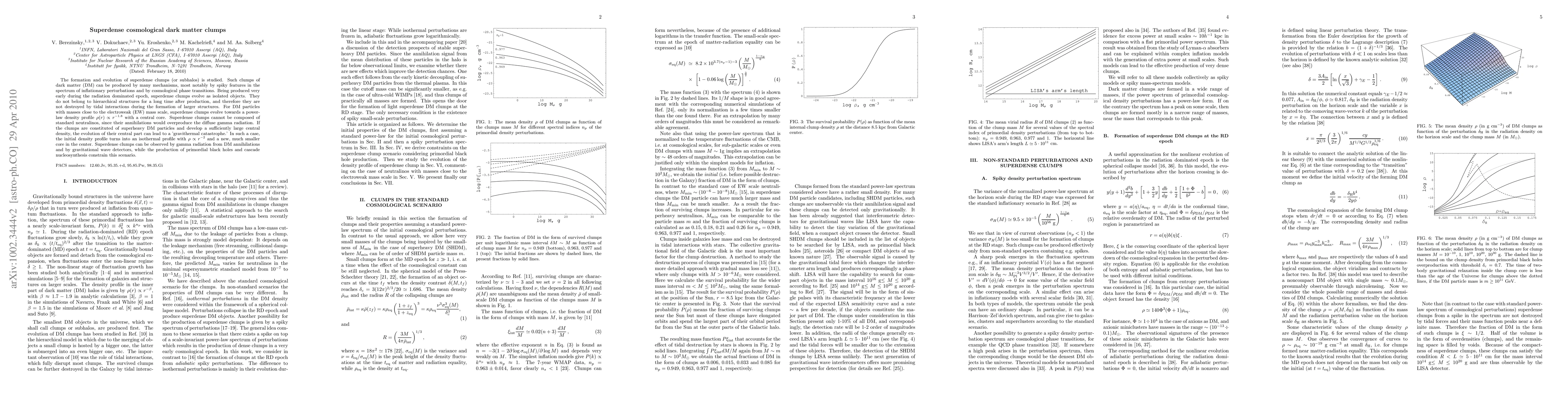 Researchers study superdense clumps of dark matter that can be detected by gamma radiation and gravitational wave detectors, while their formation is constrained by the production of primordial black holes and cascade nucleosynthesis.