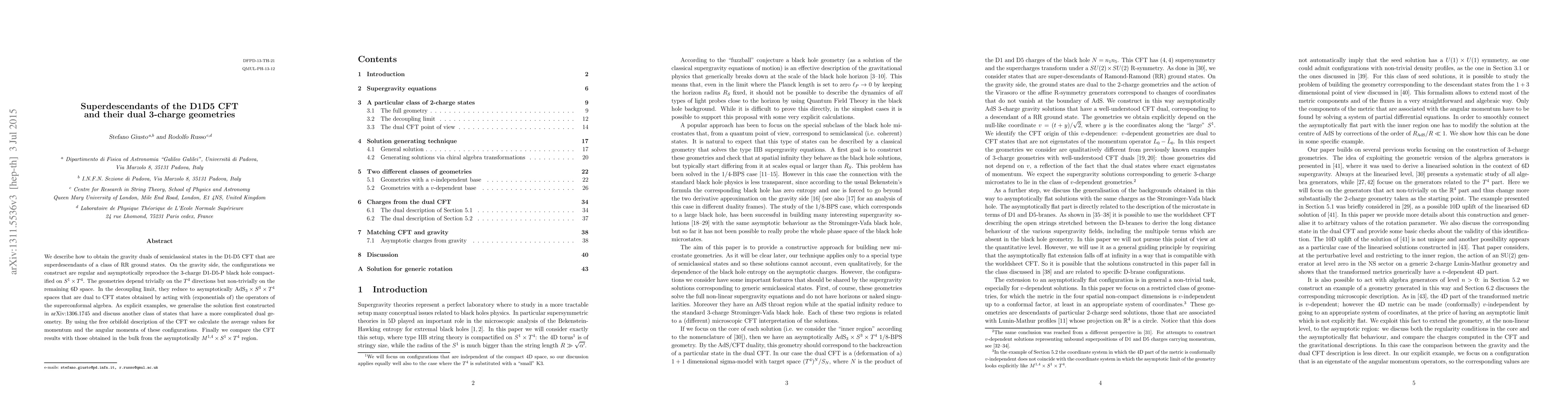This paper constructs gravity duals for semiclassical states in the D1-D5 CFT that are superdescendants of RR ground states, showing they reproduce the 3-charge D1-D5-P black hole in $S^1\times T^4$. The dual geometries in the decoupling limit are asymptotically AdS$_3 \times S^3 \times T^4$, corresponding to CFT states derived from superconformal operators.