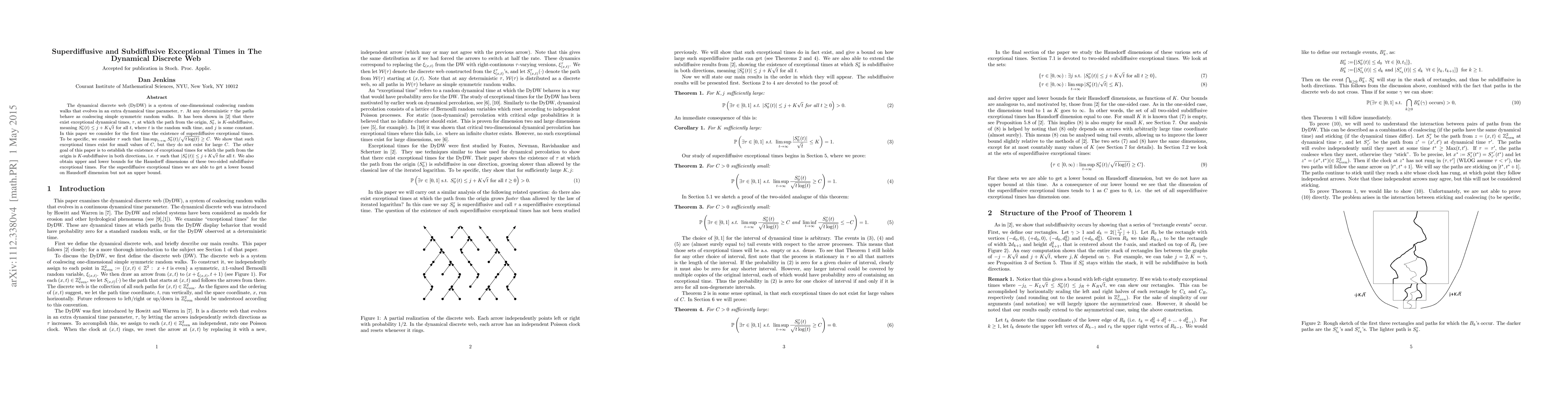 This paper investigates exceptional dynamical times in the dynamical discrete web, where paths exhibit superdiffusive or subdiffusive behavior, deviating from typical random walk properties. It extends previous findings to include both superdiffusive and subdiffusive exceptional times, and provides bounds for the Hausdorff dimensions of these exceptional time sets.