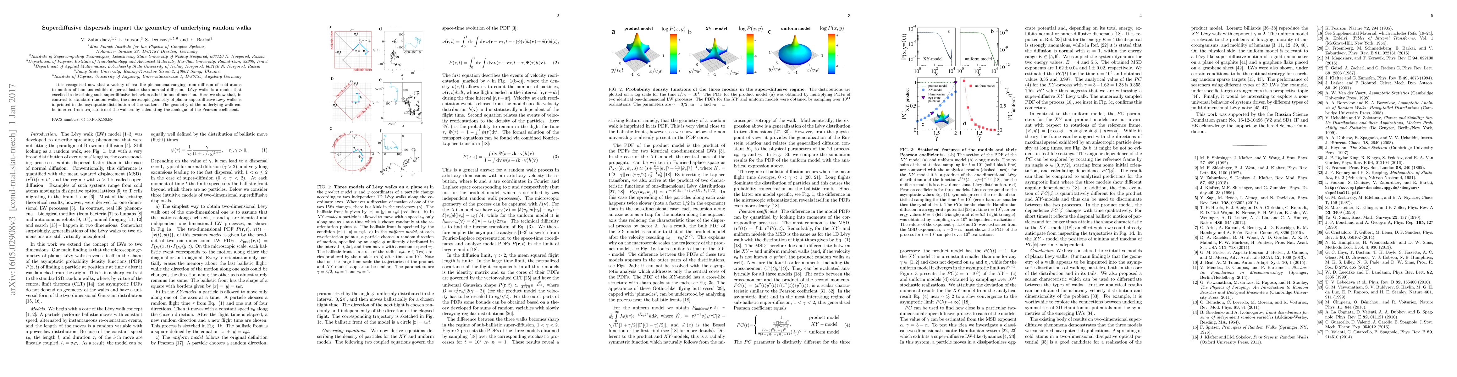 This paper demonstrates that superdiffusive dispersals, characterized by Lévy walks, imprint the geometry of their underlying random walks onto the asymptotic distribution of walkers. The geometry can be inferred from trajectories using an analogue of the Pearson coefficient.