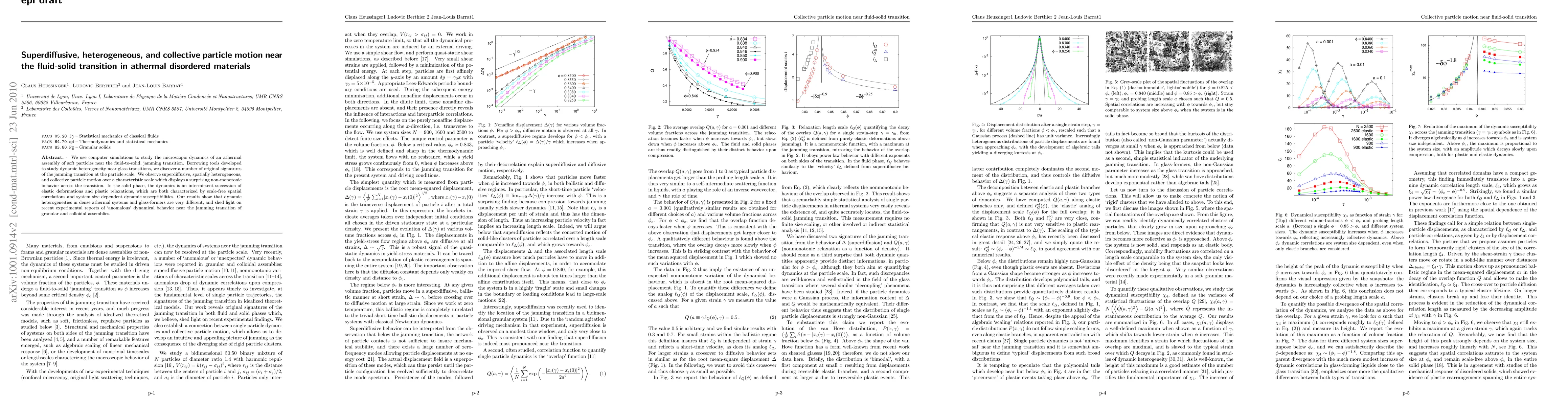This paper uses computer simulations to explore the microscopic dynamics of soft particles near the jamming transition in athermal disordered materials, revealing superdiffusive, heterogeneous, and collective particle motion. The study finds distinct dynamic heterogeneities in dense athermal systems compared to glass-formers, providing insights into anomalous dynamics observed in granular and colloidal assemblies.