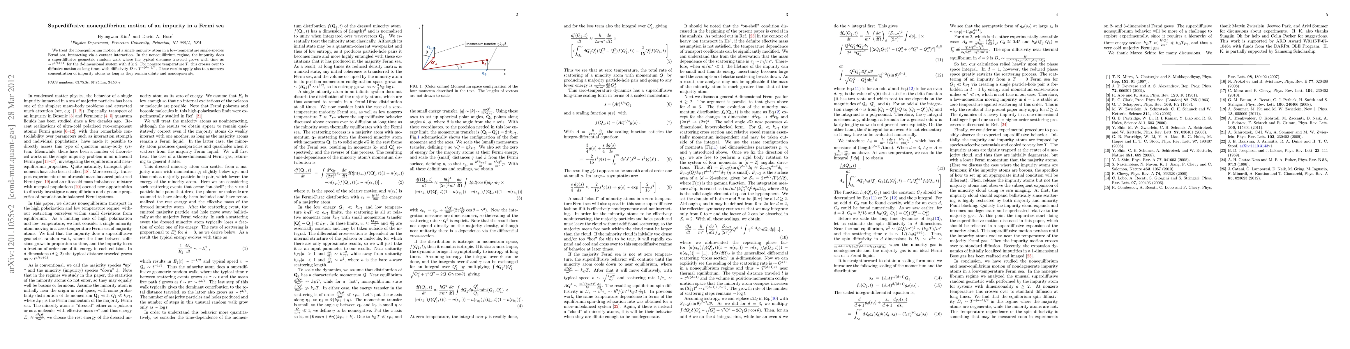 This paper investigates the nonequilibrium motion of a single impurity atom in a low-temperature Fermi sea, revealing superdiffusive behavior with distance scaling as $t^{d/(d+1)}$ in $d$ dimensions. At long times and nonzero temperature, the motion transitions to diffusive with diffusivity $D\sim T^{-(d-1)/2}$.