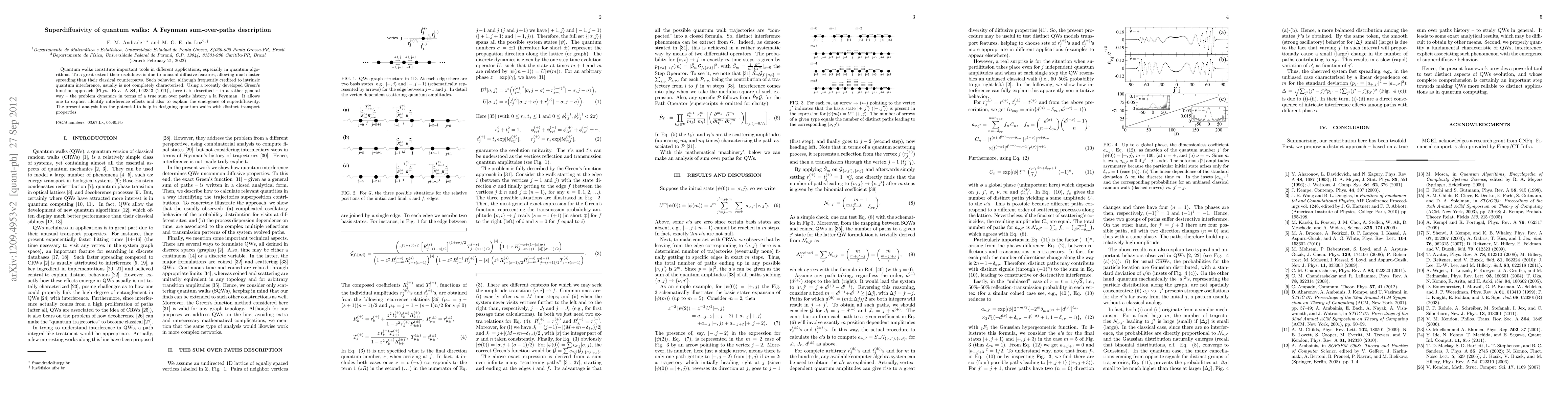 This paper explores the superdiffusive behavior of quantum walks using a Feynman sum-over-paths approach, identifying quantum interference effects and explaining the emergence of superdiffusivity, which could aid in designing quantum walks with tailored transport properties.