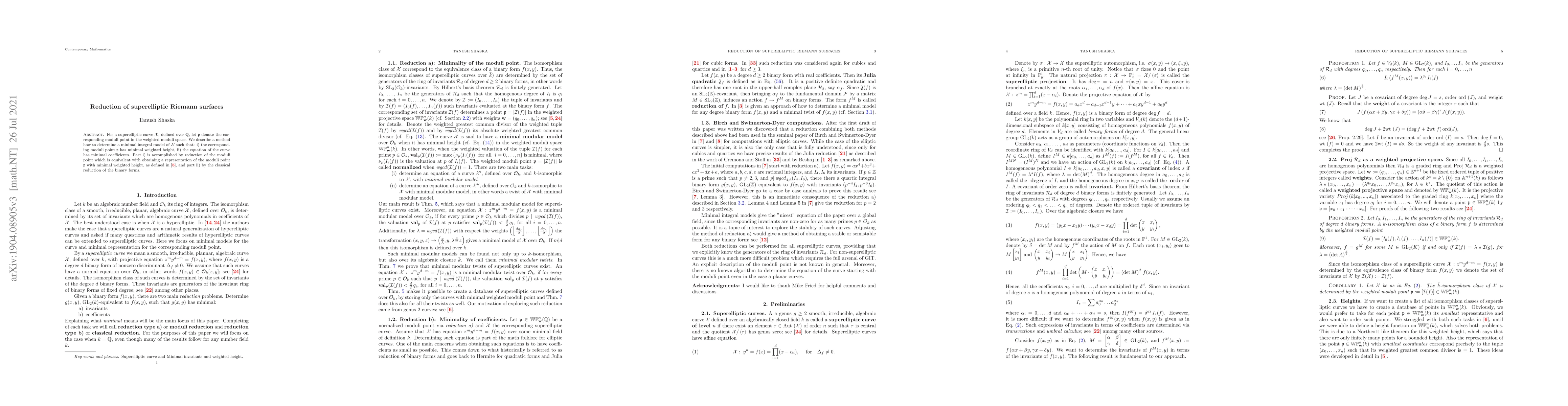The paper introduces a method to minimize weighted height of moduli points and coefficients of binary forms, combining reduction techniques for quadratics and higher-degree forms.