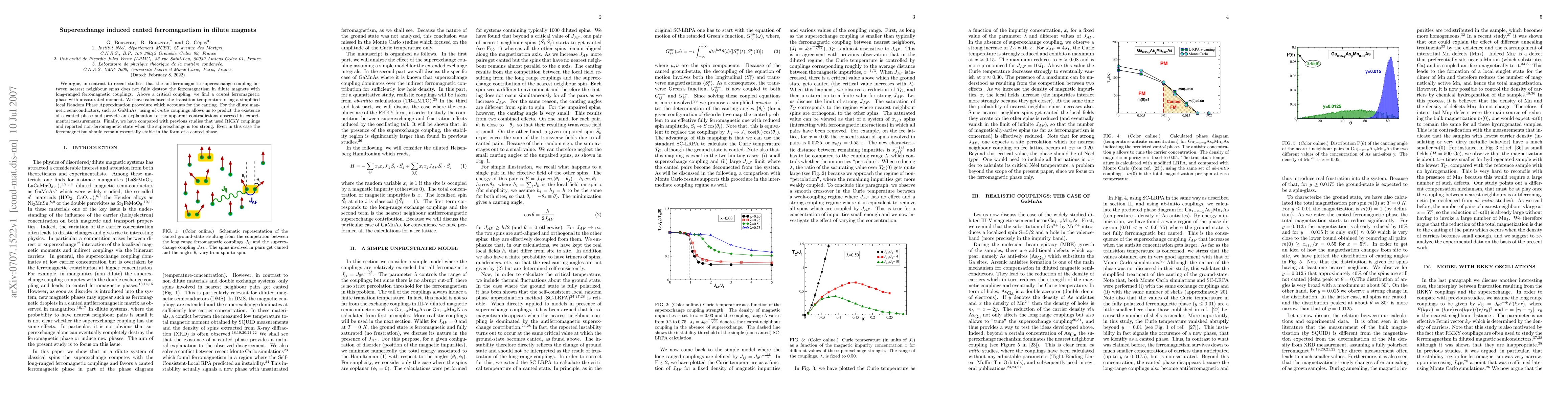 We argue, in contrast to recent studies, that the antiferromagnetic superexchange coupling between nearest neighbour spins does not fully destroy the ferromagnetism in dilute magnets with long-ranged ferromagnetic couplings. Above a critical coupling, we find a \textit{canted} ferromagnetic phase with unsaturated moment. We have calculated the transition temperature using a simplified local Random Phase Approximation procedure which accounts for the canting. For the dilute magnetic semiconductors, such as GaMnAs, using \textit{ab-initio} couplings allows us to predict the existence of a canted phase and provide an explanation to the apparent contradictions observed in experimental measurements. Finally, we have compared with previous studies that used RKKY couplings and reported non-ferromagnetic state when the superexchange is too strong. Even in this case the ferromagnetism should remain essentially stable in the form of a canted phase.