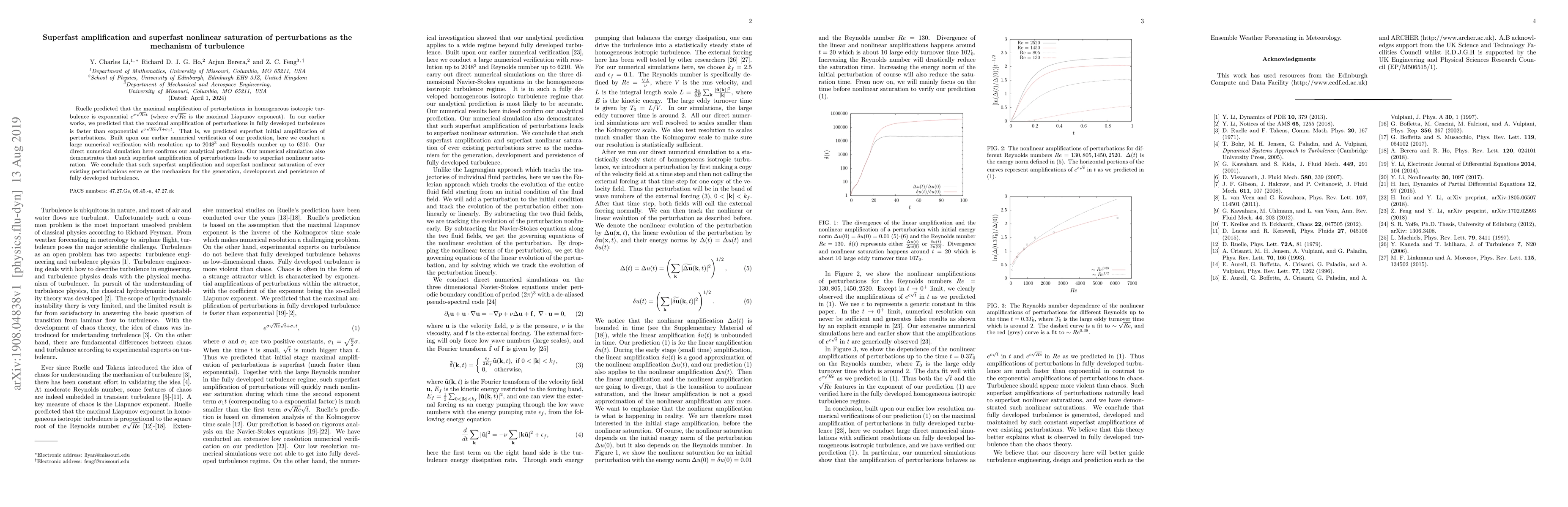 Ruelle predicted that the maximal amplification of perturbations in homogeneous isotropic turbulence is exponential $e^{\sigma \sqrt{Re} t}$ (where $\sigma \sqrt{Re}$ is the maximal Liapunov exponent). In our earlier works, we predicted that the maximal amplification of perturbations in fully developed turbulence is faster than exponential $e^{\sigma \sqrt{Re} \sqrt{t} +\sigma_1 t}$. That is, we predicted superfast initial amplification of perturbations. Built upon our earlier numerical verification of our prediction, here we conduct a large numerical verification with resolution up to $2048^3$ and Reynolds number up to $6210$. Our direct numerical simulation here confirms our analytical prediction. Our numerical simulation also demonstrates that such superfast amplification of perturbations leads to superfast nonlinear saturation. We conclude that such superfast amplification and superfast nonlinear saturation of ever existing perturbations serve as the mechanism for the generation, development and persistence of fully developed turbulence.
