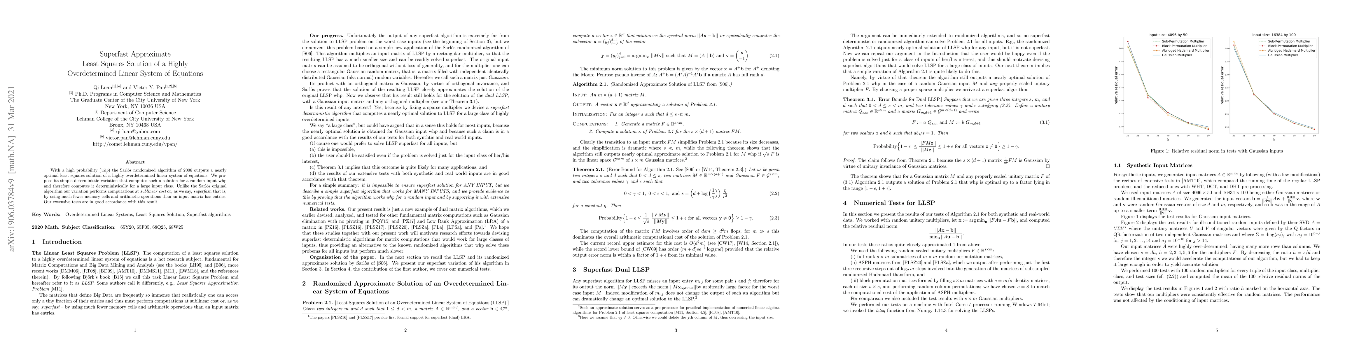 With a high probability the Sarlos randomized algorithm of 2006 outputs a nearly optimal least squares solution of a highly overdeterminedlinear system of equations. We propose its simple deterministic variation which computes such a solution for a random input whp and therefore computes it deterministically for a large input class. Unlike the Sarlos original algorithm our variation performs computations at sublinear cost or, as we say, superfast, that is, by using much fewer memory cells and arithmetic operations than an input matrix has entries. Our extensive tests are in good accordance with this result.