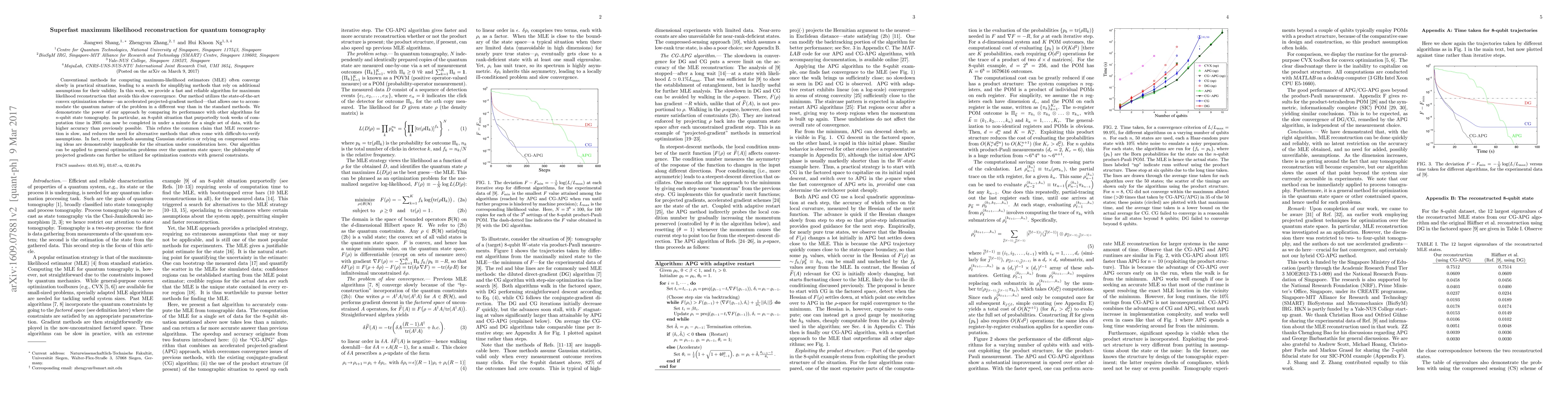 Researchers developed a fast algorithm for maximum likelihood reconstruction in quantum tomography, achieving accuracy in under 1 minute for an 8-qubit state, refuting claims of slow convergence and demonstrating the power of projected gradients.