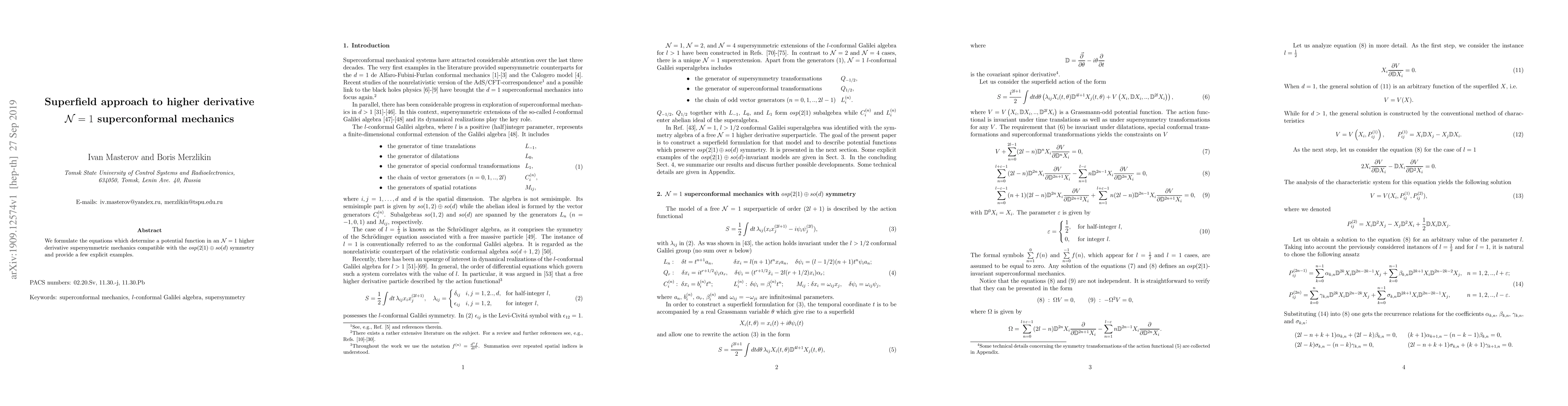 Researchers develop a new approach to supersymmetric mechanics that combines $osp(2|1)$ symmetry with higher derivatives, providing a framework for potential functions in compatible systems.