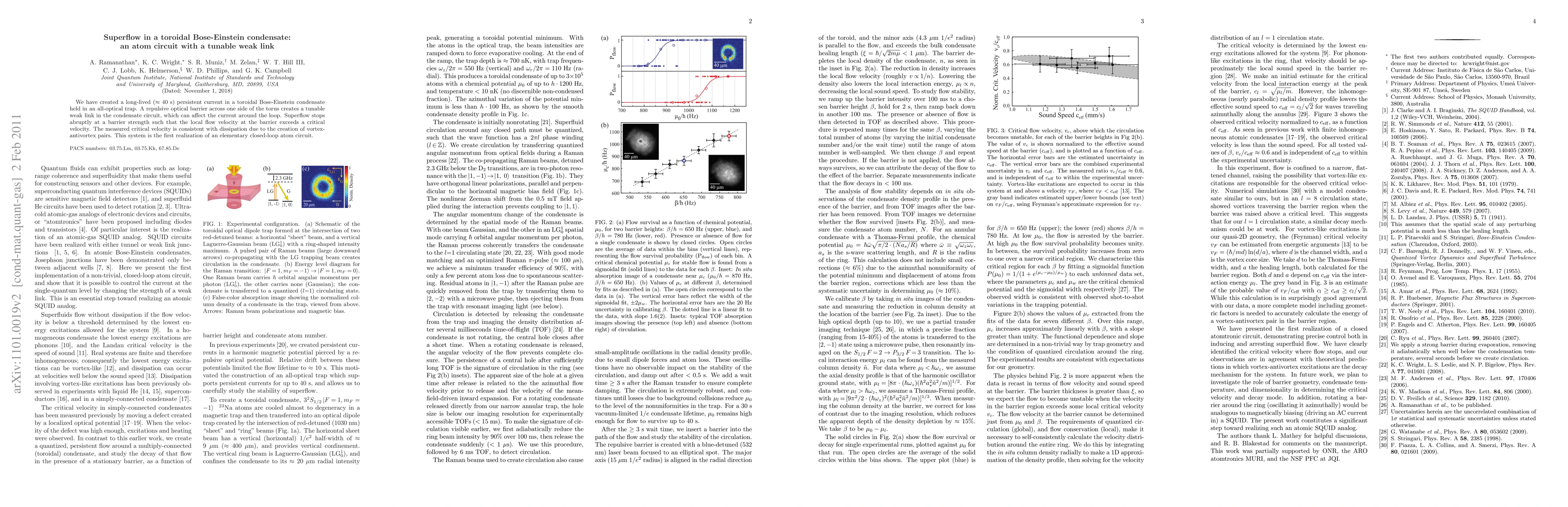 This research demonstrates a persistent current in a toroidal Bose-Einstein condensate, utilizing an optical barrier to create a tunable weak link. The study reveals that superflow ceases when the local flow velocity surpasses a critical velocity, indicating dissipation through vortex-antivortex pair creation, thus establishing the first closed-loop atom circuit.