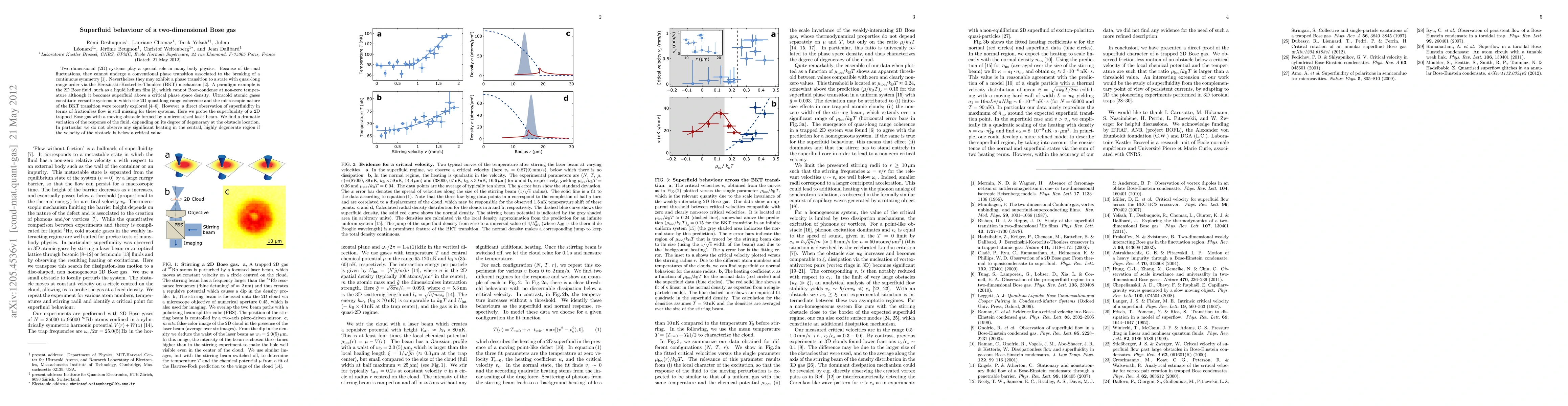 This paper investigates the superfluid behavior of a two-dimensional Bose gas using a moving obstacle, revealing that the gas exhibits frictionless flow below a critical velocity, indicating superfluidity, without significant heating in the highly degenerate central region. The study highlights the quasi-long range order and the Berezinskii-Kosterlitz-Thouless transition mechanism in ultracold atomic gases.