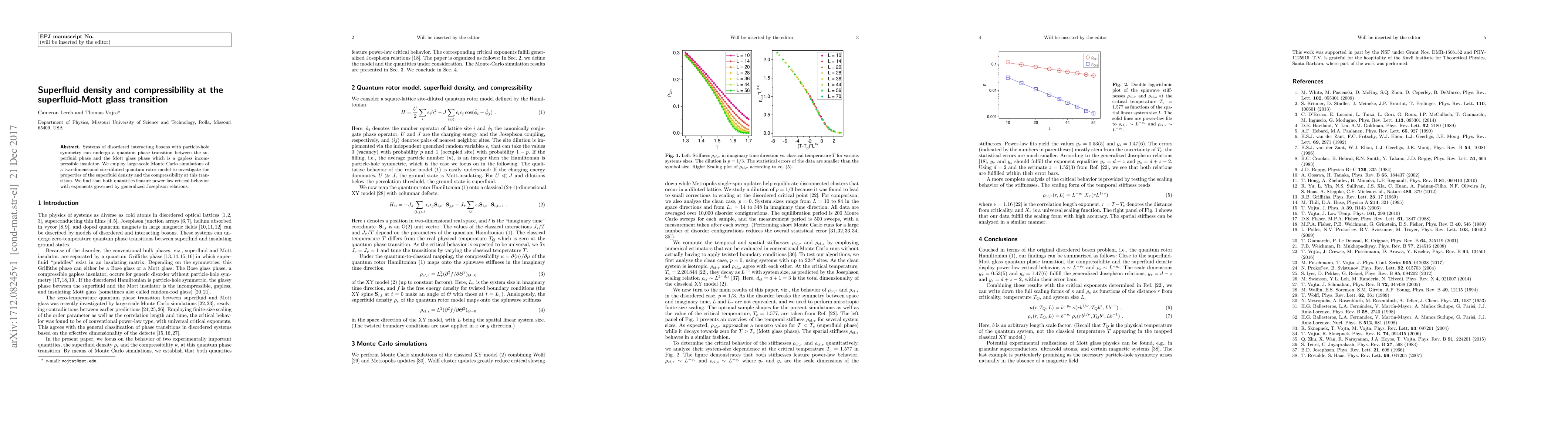 This study uses Monte Carlo simulations to explore the superfluid density and compressibility at the superfluid-Mott glass phase transition in disordered interacting bosons. The results reveal power-law critical behavior for both properties, governed by generalized Josephson relations.