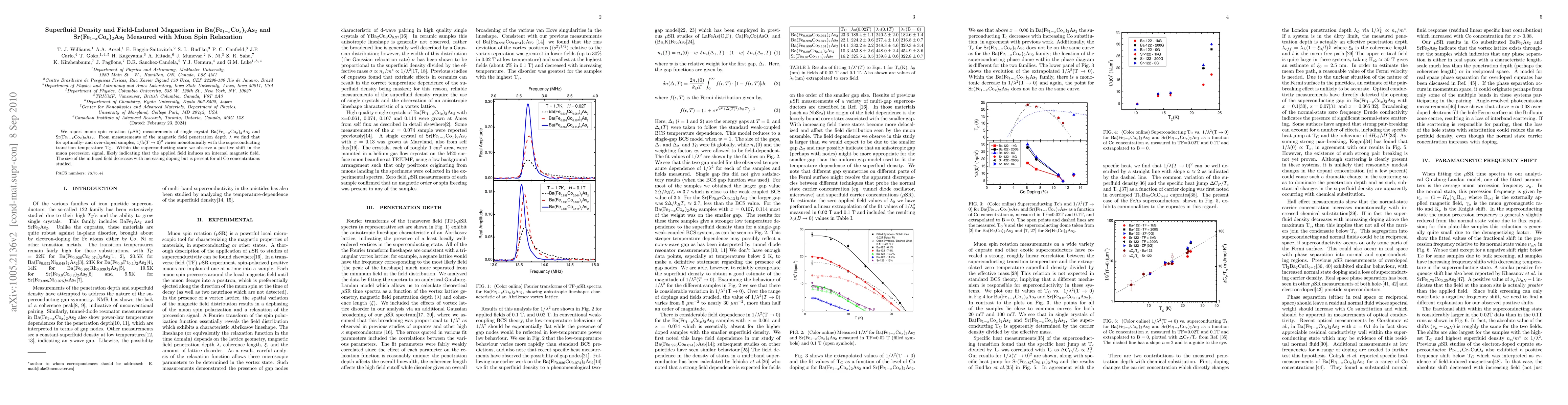 We report muon spin rotation ($\mu$SR) measurements of single crystal Ba(Fe$_{1-x}$Co$_x$)$_2$As$_2$ and Sr(Fe$_{1-x}$Co$_x$)$_2$As$_2$. From measurements of the magnetic field penetration depth $\lambda$ we find that for optimally- and over-doped samples, $1/\lambda(T\to 0)^2$ varies monotonically with the superconducting transition temperature T$_{\rm C}$. Within the superconducting state we observe a positive shift in the muon precession signal, likely indicating that the applied field induces an internal magnetic field. The size of the induced field decreases with increasing doping but is present for all Co concentrations studied.