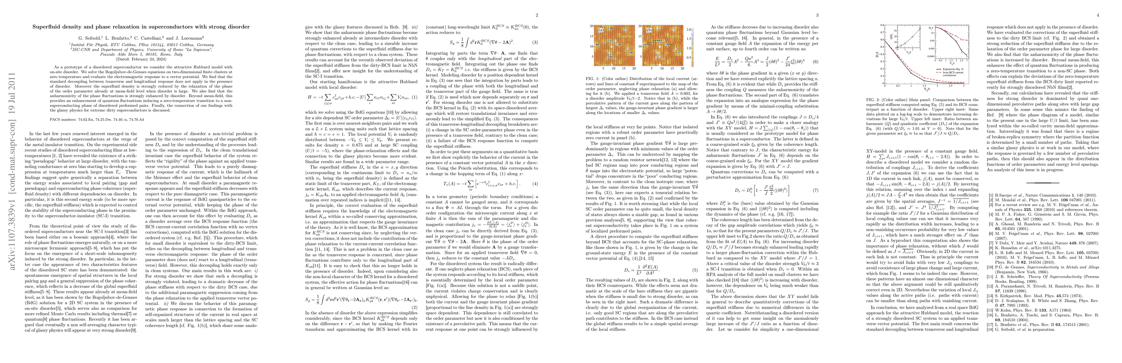 This paper investigates the electromagnetic response in disordered superconductors using the attractive Hubbard model with on-site disorder, revealing that the decoupling between transverse and longitudinal responses breaks down. The superfluid density is significantly reduced due to phase relaxation of the order parameter, leading to a zero-temperature transition to a non-superconducting phase.