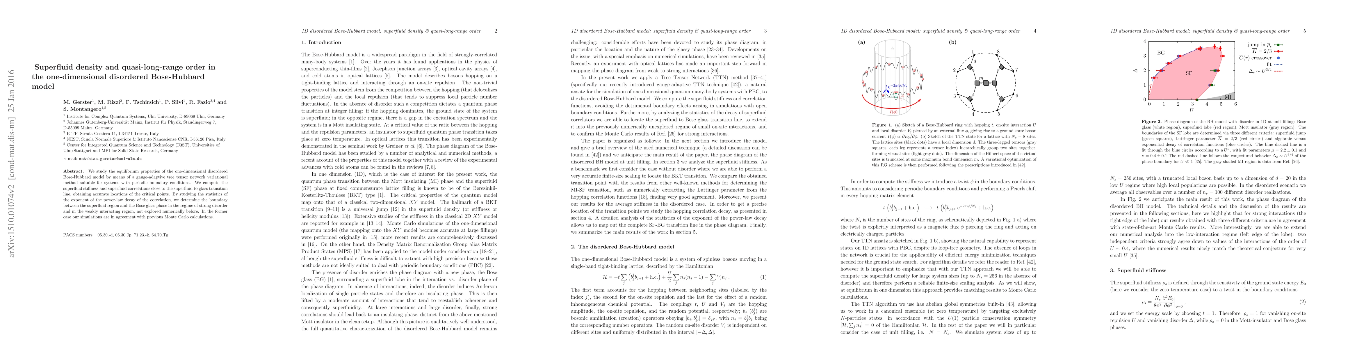 We study the equilibrium properties of the one-dimensional disordered Bose-Hubbard model by means of a gauge-adaptive tree tensor network variational method suitable for systems with periodic boundary conditions. We compute the superfluid stiffness and superfluid correlations close to the superfluid to glass transition line, obtaining accurate locations of the critical points. By studying the statistics of the exponent of the power-law decay of the correlation, we determine the boundary between the superfluid region and the Bose glass phase in the regime of strong disorder and in the weakly interacting region, not explored numerically before. In the former case our simulations are in agreement with previous Monte Carlo calculations.