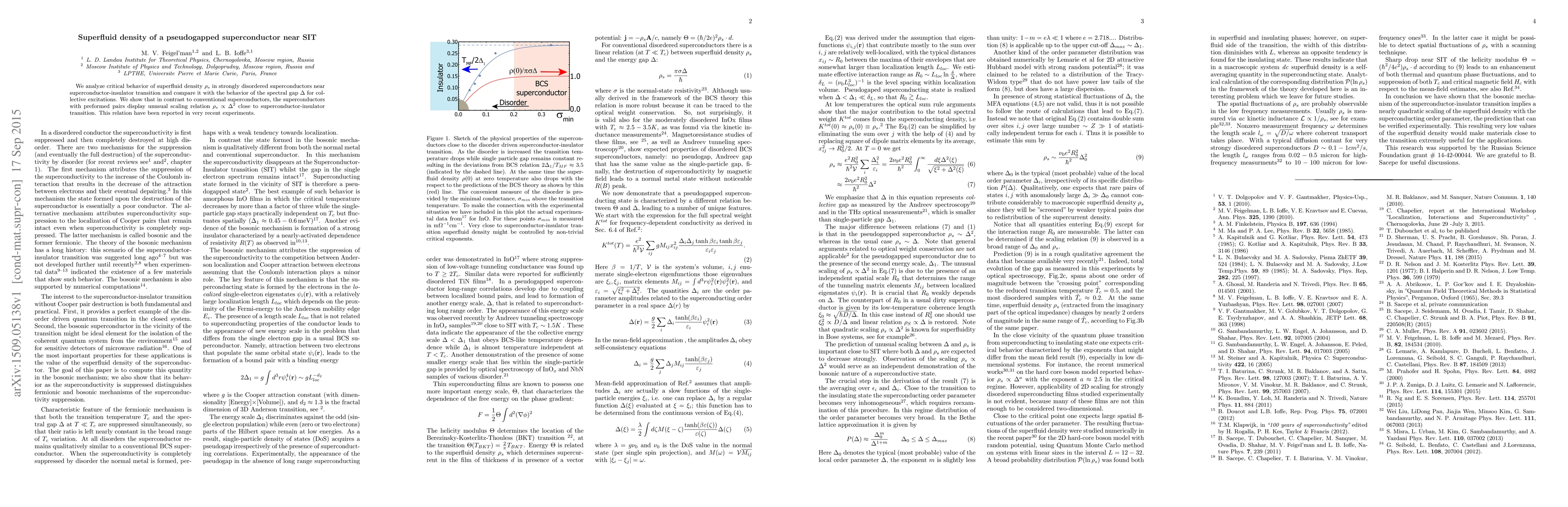 This paper investigates the superfluid density $\rho_s$ in strongly disordered superconductors near the superconductor-insulator transition (SIT), revealing an unusual scaling relation $\rho_s \propto \Delta^2$ for superconductors with preformed pairs, contrasting with conventional superconductors. Experimental observations support this unconventional behavior.