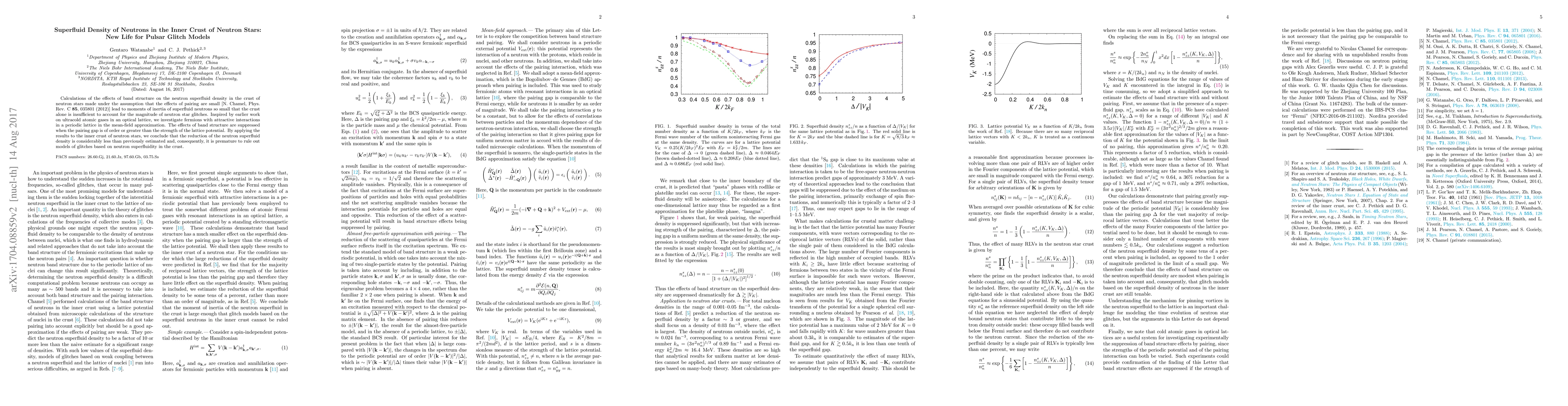 This paper investigates the superfluid density of neutrons in neutron star crusts, finding that band structure effects reduce the density less than previously thought, thus keeping neutron superfluidity in the crust as a viable model for pulsar glitches.