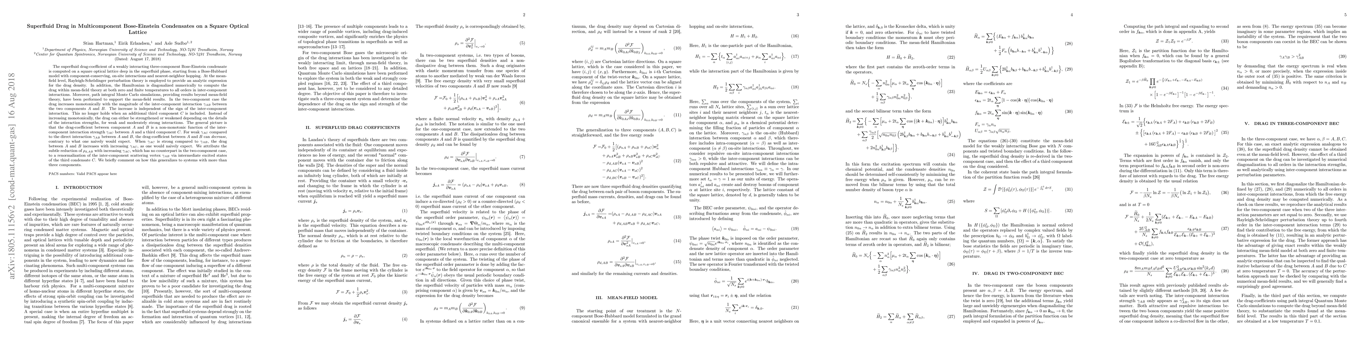 This paper computes the superfluid drag coefficient in a three-component Bose-Einstein condensate on a square optical lattice, revealing non-monotonic behavior in the drag density dependent on inter-component interactions. The drag can either increase or decrease with interaction strength, attributed to renormalization effects from the third component.