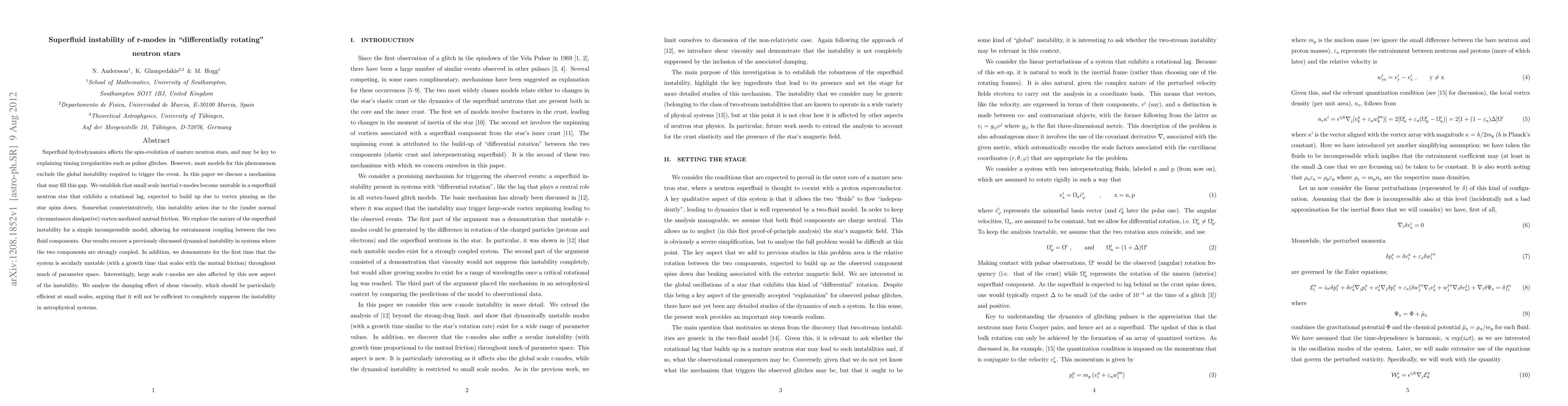 This paper explores the superfluid instability of r-modes in differentially rotating neutron stars, proposing a mechanism where inertial r-modes become unstable due to vortex-mediated mutual friction. It finds that this instability can be secularly present throughout much of parameter space, and that shear viscosity's damping effect is insufficient to fully suppress it.