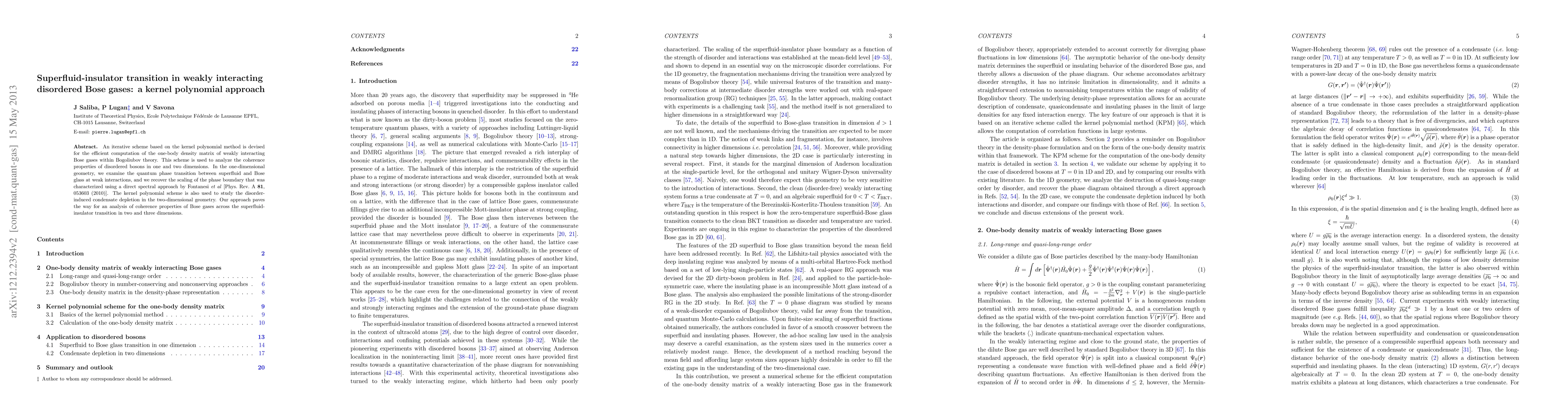 This paper introduces an iterative kernel polynomial method for computing the one-body density matrix in weakly interacting disordered Bose gases, analyzing the superfluid-insulator transition in one and two dimensions. It confirms the phase boundary scaling in one dimension and explores condensate depletion in two dimensions.
