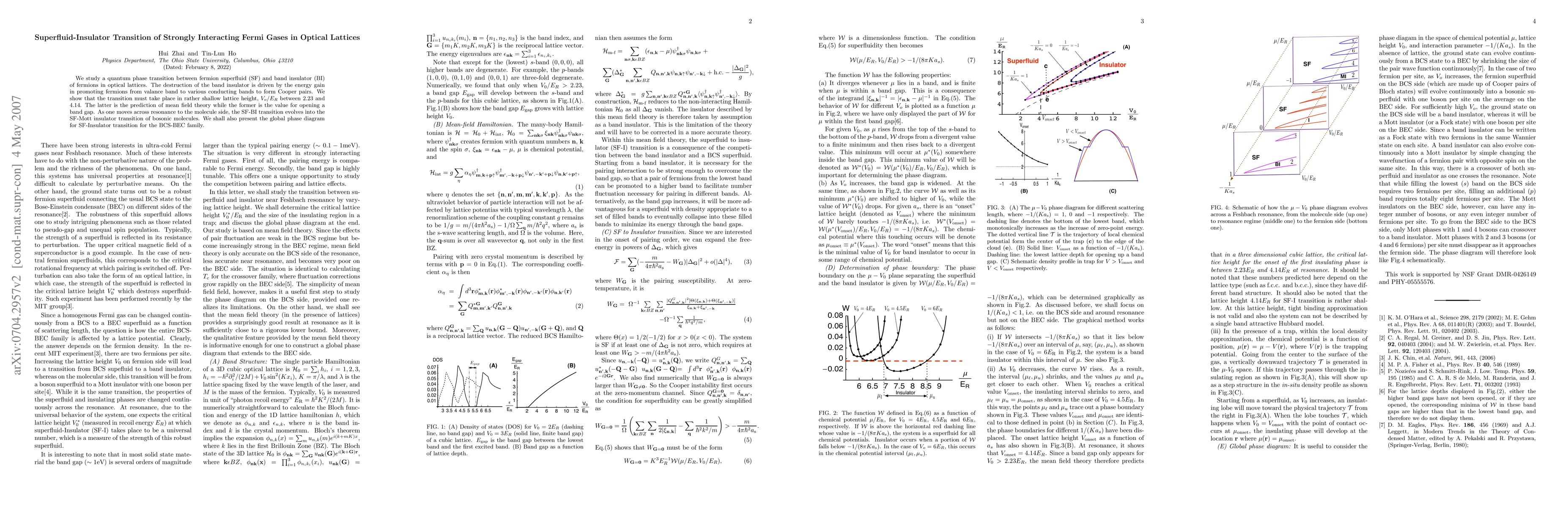 This paper investigates the quantum phase transition between superfluid and band insulator states in strongly interacting Fermi gases within optical lattices, identifying the transition range in shallow lattice heights. It also explores the transition's evolution into a bosonic molecule regime and presents a global phase diagram for the BCS-BEC crossover.