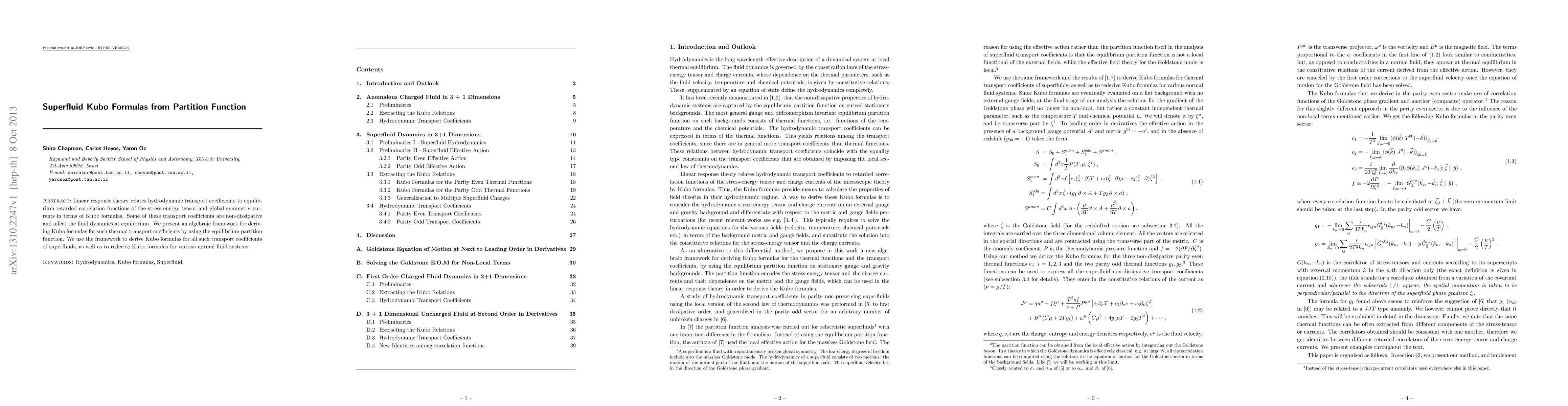 Linear response theory relates hydrodynamic transport coefficients to equilibrium retarded correlation functions of the stress-energy tensor and global symmetry currents in terms of Kubo formulas. Some of these transport coefficients are non-dissipative and affect the fluid dynamics at equilibrium. We present an algebraic framework for deriving Kubo formulas for such thermal transport coefficients by using the equilibrium partition function. We use the framework to derive Kubo formulas for all such transport coefficients of superfluids, as well as to rederive Kubo formulas for various normal fluid systems.