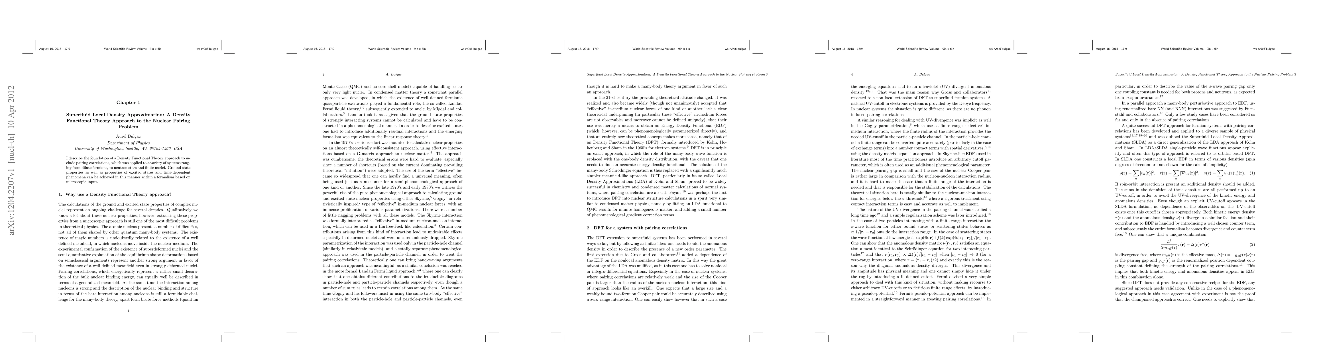 This paper introduces a Density Functional Theory approach that incorporates superfluid pairing correlations, applicable to systems from dilute fermions to neutron stars and finite nuclei, enabling the study of ground state, excited state, and time-dependent properties based on microscopic input.