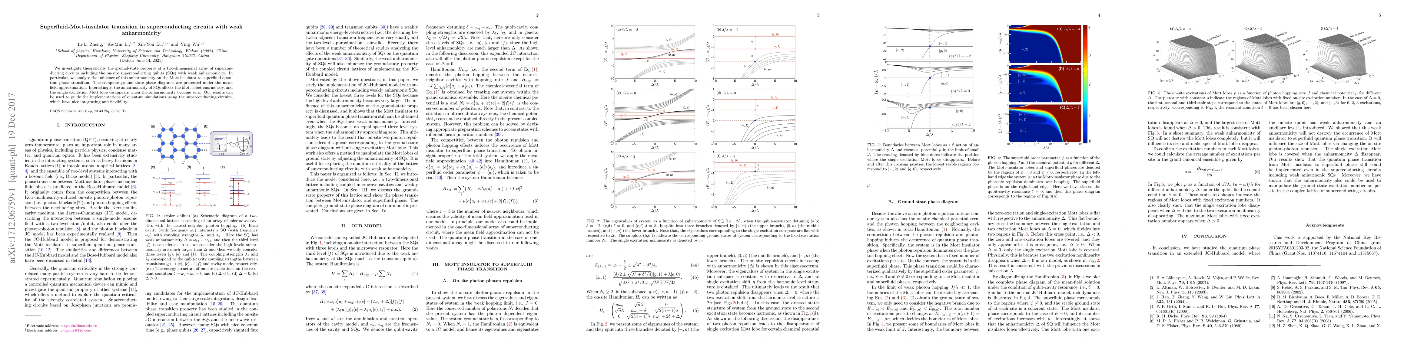 We investigate theoretically the ground-state property of a two-dimensional array of superconducting circuits including the on-site superconducting qubits (SQs) with weak anharmonicity. In particular, we analyse the influence of this anharmonicity on the Mott insulator to superfluid quantum phase transition. The complete ground-state phase diagrams are presented under the mean field approximation. Interestingly, the anharmonicity of SQs affects the Mott lobes enormously, and the single excitation Mott lobe disappears when the anharmonicity become zero. Our results can be used to guide the implementations of quantum simulations using the superconducting circuits, which have nice integrating and flexibility.