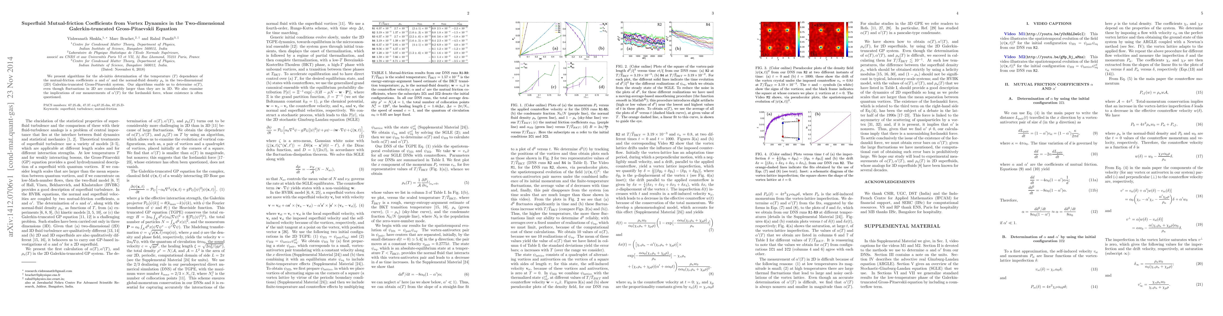 We present algorithms for the ab-initio determination of the temperature ($T$) dependence of the mutual-friction coefficients $\alpha$ and $\alpha'$ and the normal-fluid density $\rho_{\rm n}$ in the two-dimensional (2D) Galerkin-truncated Gross-Pitaevskii system. Our algorithms enable us to determine $\alpha(T)$, even though fluctuations in 2D are considerably larger than they are in 3D. We also examine the implications of our measurements of $\alpha'(T)$ for the Iordanskii force, whose existence is often questioned.