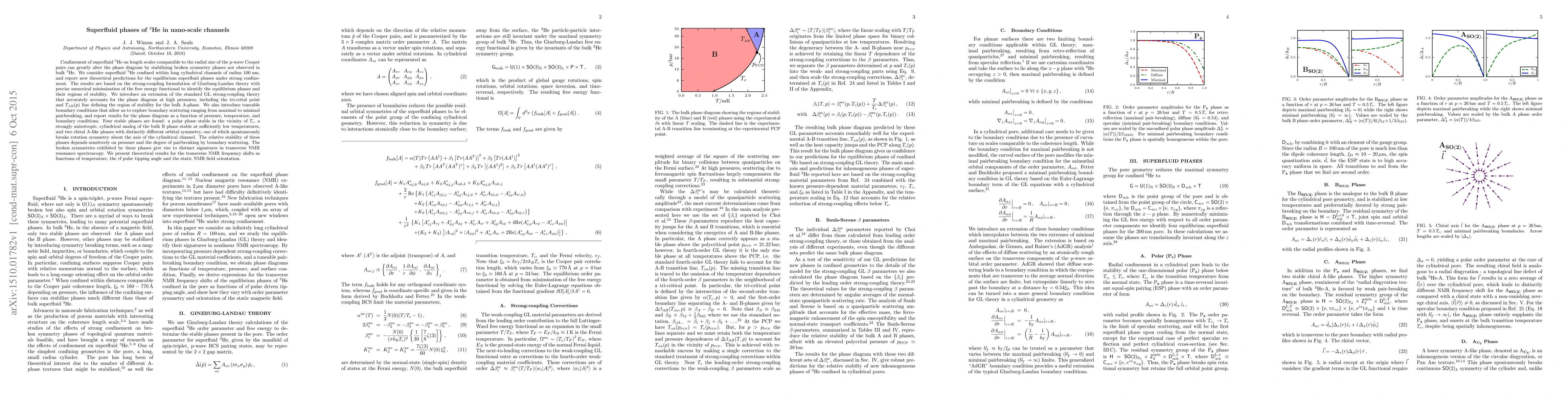 This paper investigates the superfluid phases of $^3$He confined within nano-scale cylindrical channels, predicting four stable phases under strong confinement. The theoretical framework employs an extended Ginzburg-Landau theory, revealing distinct signatures in transverse NMR spectroscopy that depend on pressure and boundary scattering conditions.