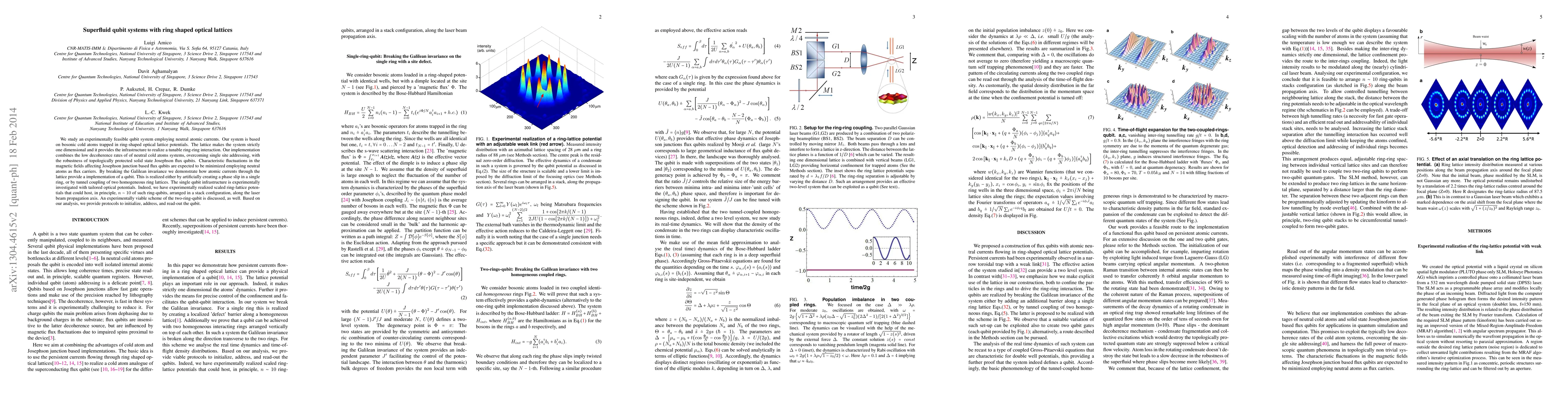 Researchers create a qubit system using neutral atomic currents in ring-shaped optical lattices, combining low decoherence with robustness of topologically protected solid state qubits.