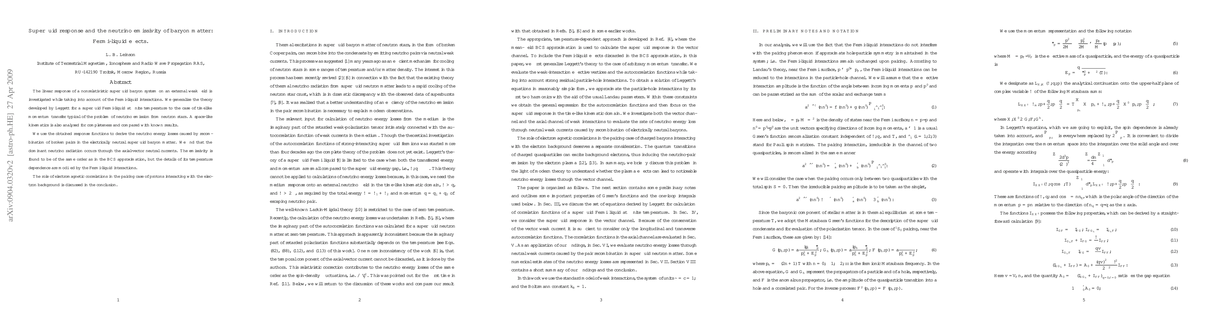 This paper investigates the superfluid response of baryon matter under weak external fields, incorporating Fermi-liquid interactions. It derives the neutrino emissivity from neutron stars, finding that axial-vector neutral currents dominate, with emissivity modified by Fermi-liquid effects compared to BCS approximations.