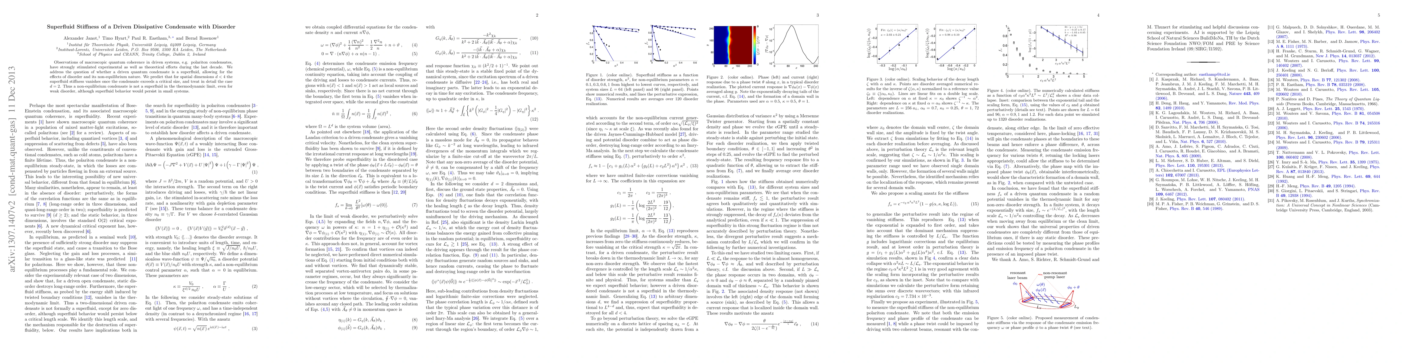 A driven quantum condensate in 2D space does not become a superfluid even with weak disorder, unlike in higher dimensions. In small systems, the condensate can exhibit superfluid behavior despite being non-equilibrium.