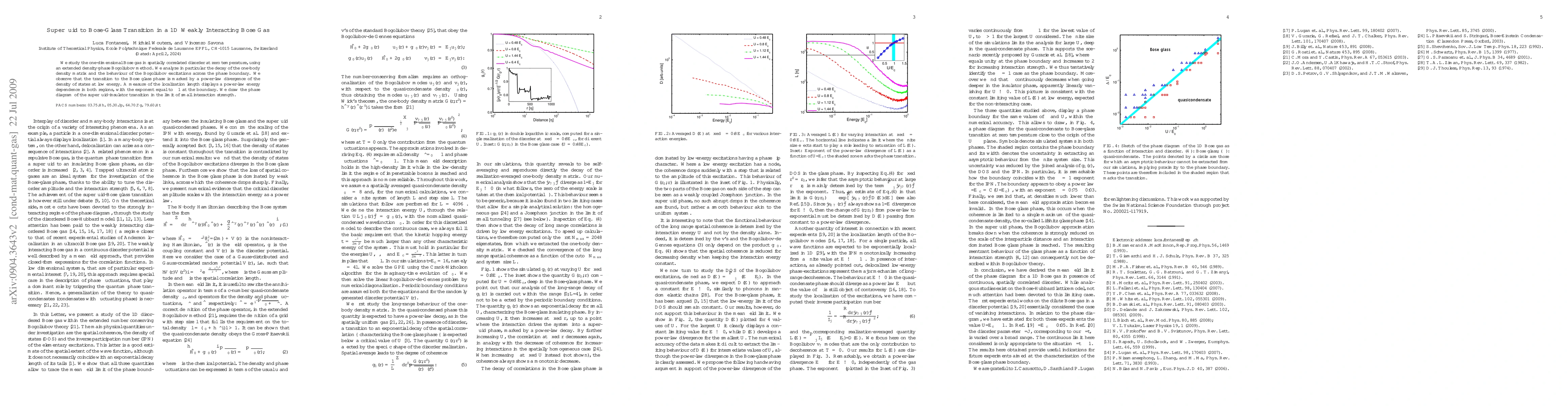 The paper investigates a one-dimensional weakly interacting Bose gas under spatial disorder, revealing a superfluid-to-Bose glass transition characterized by a power-law divergence in the density of states and a localization length displaying a power-law energy dependence, especially at the transition boundary.